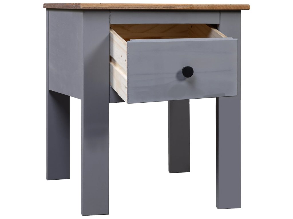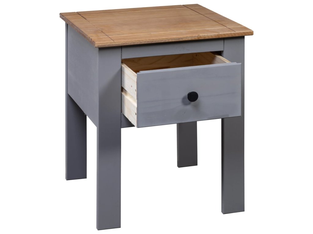 Nočný stolík je vyrobený z masívneho borovicového dreva a je veľmi stabilný a odolný. Jeho robustná vrchná doka je ideálna na umiestnenie dekoratívnych predmetov, ako sú vázy alebo rastliny v črepníkoch. Skrinka je vybavená 1 zásuvkou a poskytuje dostatok úložného priestoru na dokonalé usporiadanie rôznych položiek. Tento nočný stolík sa navyše ľahko čistí suchou handričkou.