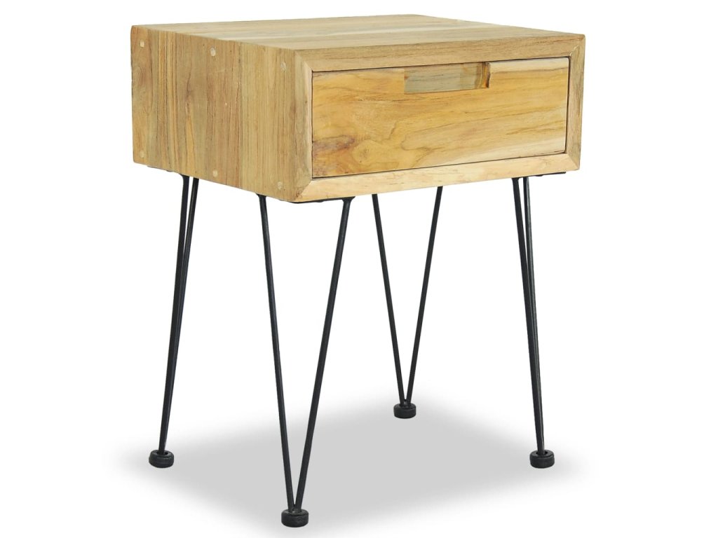 Nočný stolík v koloniálnom štýle je vyrobený z recyklovaného masívneho teakového dreva a dodá do interiéru rustikálny šmrnc. Môže sa použiť aj ako zásuvková skrinka, stolík na telefón alebo koncový stolík.