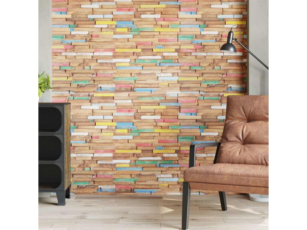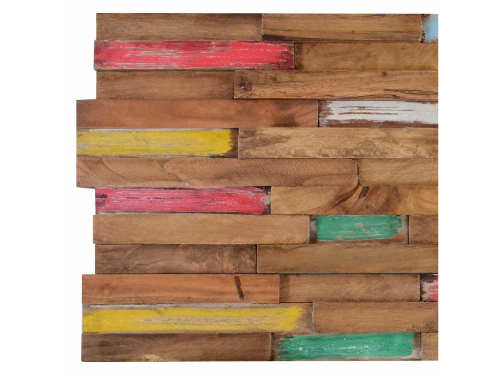 Obklad stien je vyrobený z pevný tíkového dreva, ktoré je čiastočne zafarbené v súlade s trendovým vzhľadom lodného dreva, a dodáva mu rustikálny vzhľad pripomínajúci stoh dosiek. Tieto krásne dekoratívne stenové panely sa veľmi ľahko inštalujú.