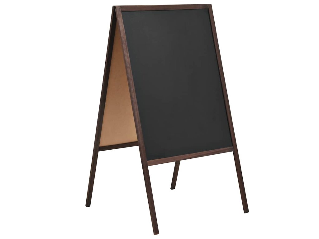 Táto tabuľa v tvare A je obojstranná, takže poskytuje dostatok priestoru na zobrazenie potrebných informácií. Plocha na písanie je hladká a dá sa jednoducho čistiť. Panely sú plne orámované pevným cédrovým drevom, takže sú stabilné a trvácne. Vďaka svojej kompaktnej veľkosti a nízkej hmotnosti táto tabuľa ušetrí priestor a dá sa jednoducho premiestňovať.