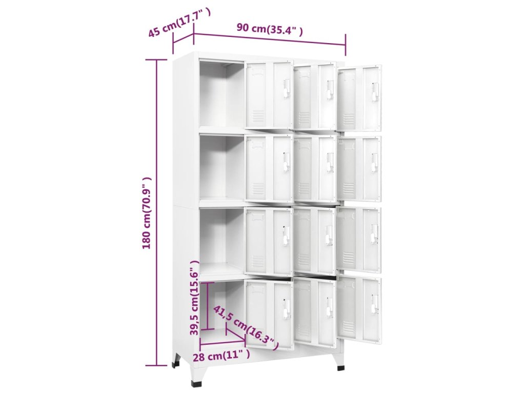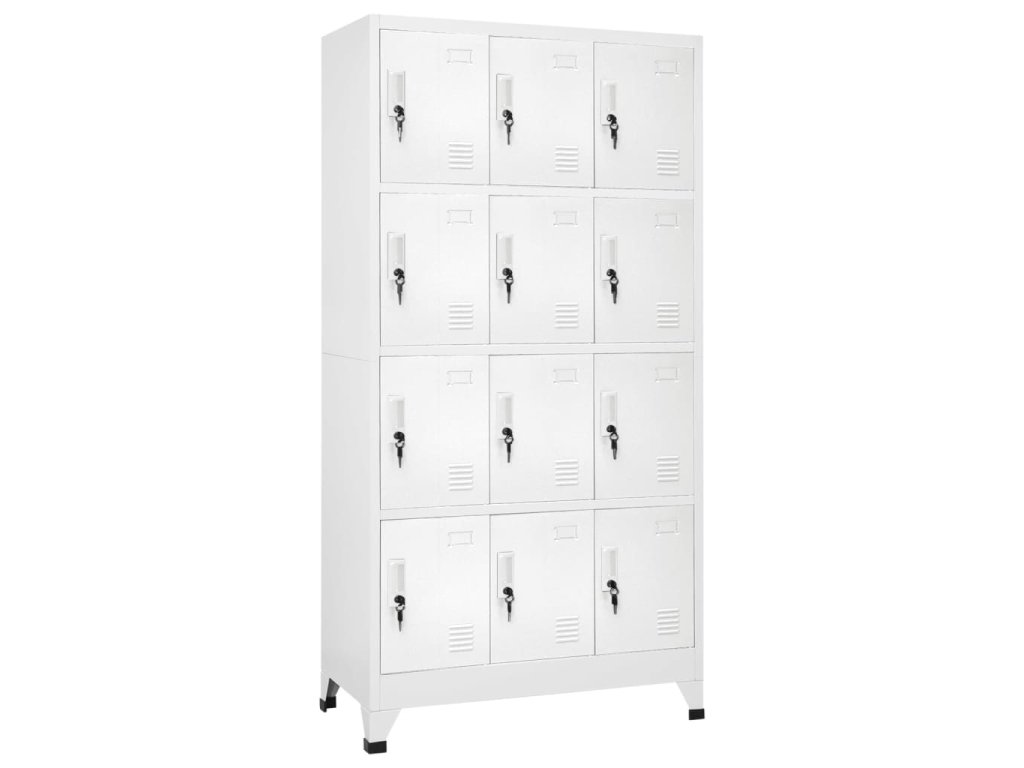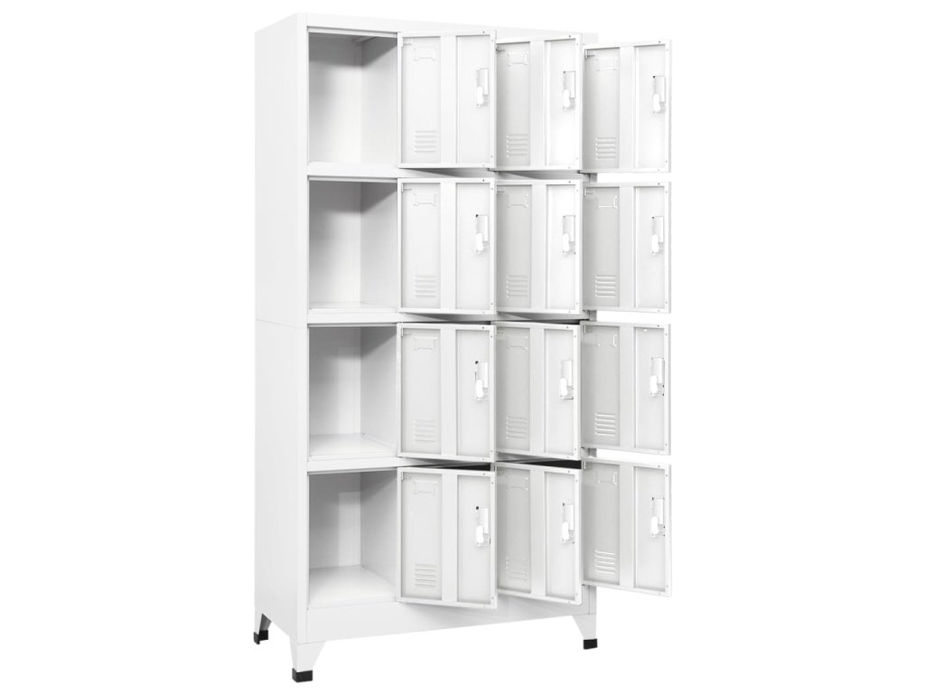 Táto šatníková skrinka má dostatočný úložný priestor na bezpečné uloženie odevov a iných osobných vecí, pretože má 12 priehradiek s uzamykateľnými dverami. Každá priehradka obsahuje držiak na menovku. Táto skrinka je vyrobená z vysoko kvalitnej ocele, takže je odolná a ľahko sa čistí. Montáž je veľmi jednoduchá.