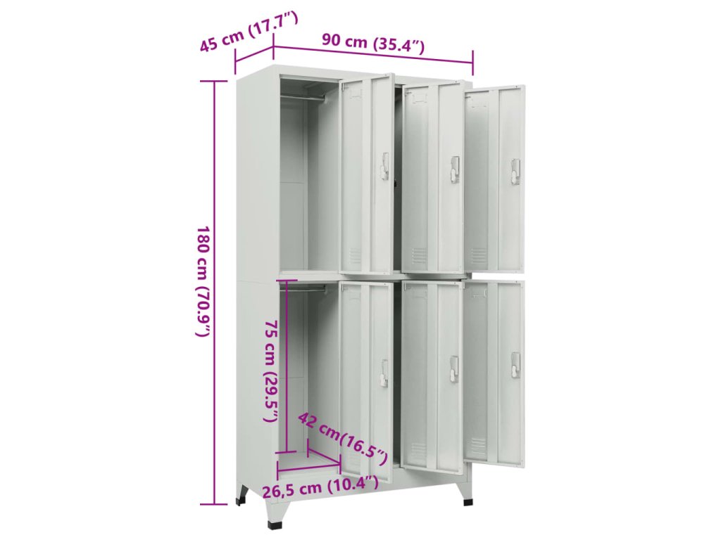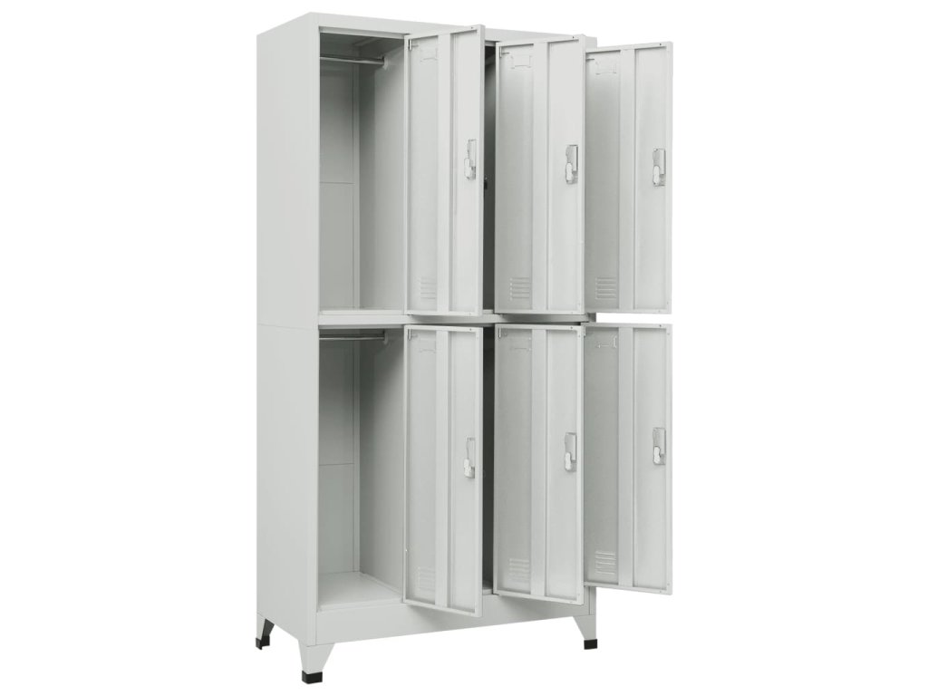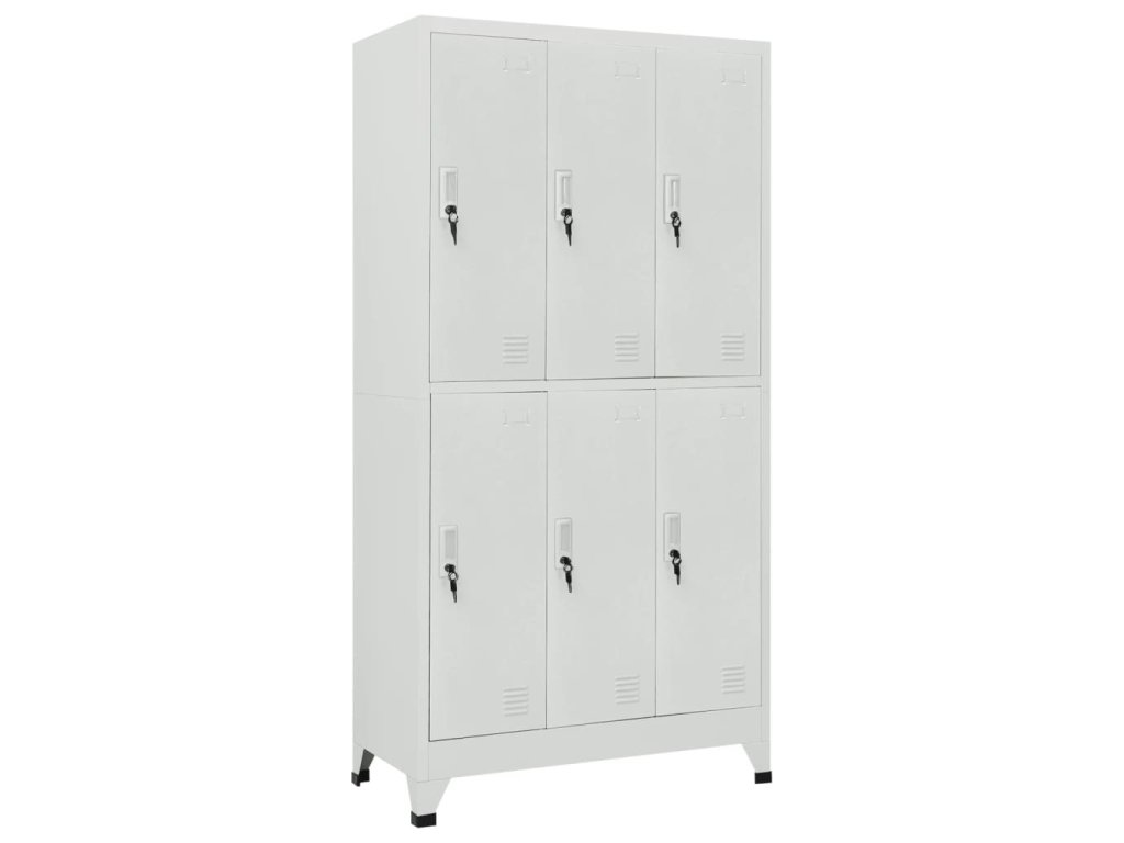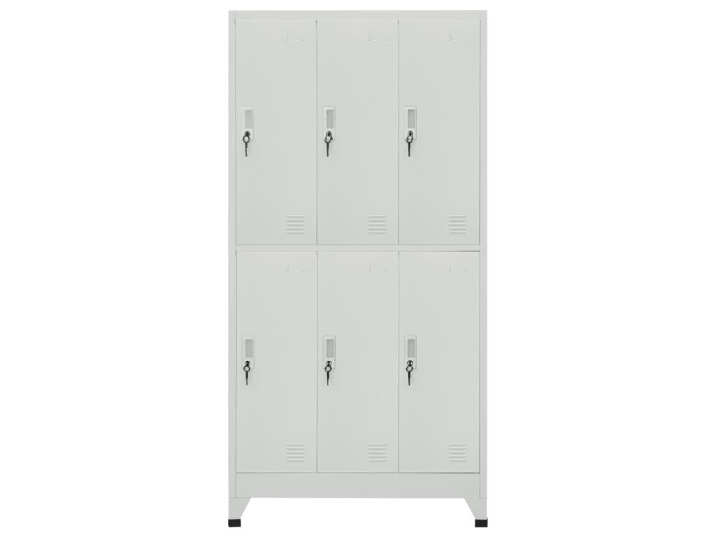 Táto šatňová skrinka obsahuje 6 samostatných priehradiek s uzamykateľnými dvierkami, a tak ponúka množstvo úložného priestoru na bezpečné odkladanie oblečenia a iných osobných vecí. V každej priehradke sa nachádza tyč na zavesenie vecí a držiak na menovku. Plastové nožičky zabránia poškrabaniu podlahy.