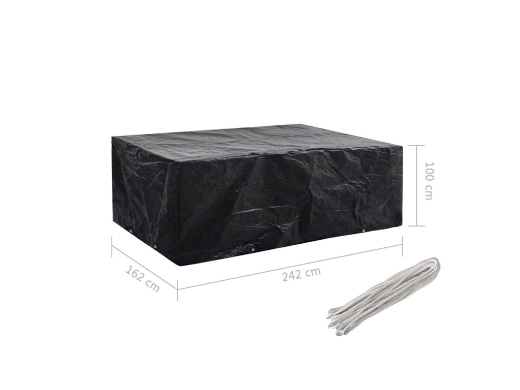 Tento kvalitný obal z PE na záhradný nábytok je vhodný na celoročnú ochranu súprav vonkajšieho nábytku pred nečistotami, vetrom, dažďom a UV žiarením.