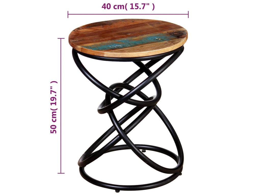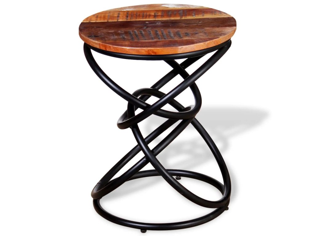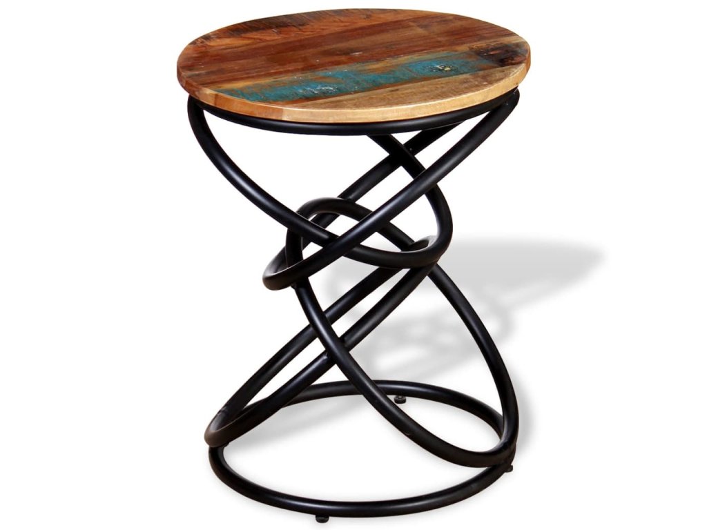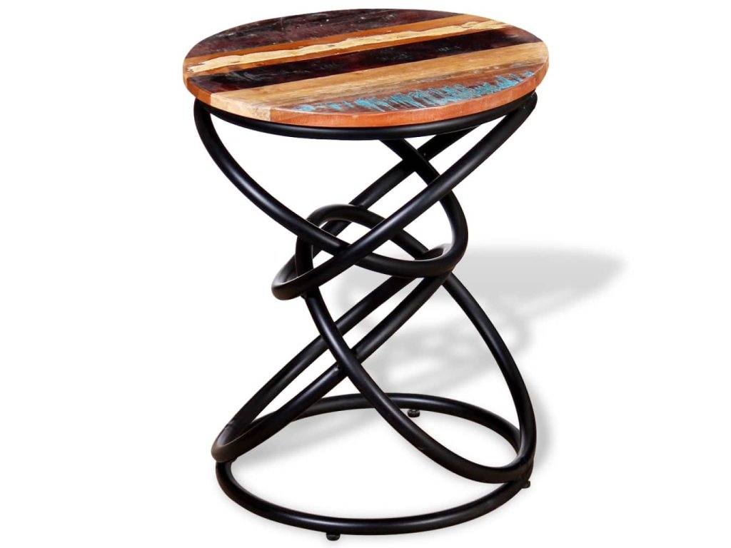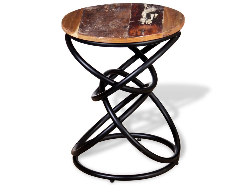 Stolová doska z recyklovaného masívu a železný rám mu prináša potrebnú pevnosť a stabilitu, a tak si naň budete môcť položiť nápoje, košíky s ovocím či rôzne ozdobné predmety. Odkladací stolík vo vintage štýle poslúži aj ako príručný stolík, stolík ku gauču, stolík do obývačky či konferenčný stolík.