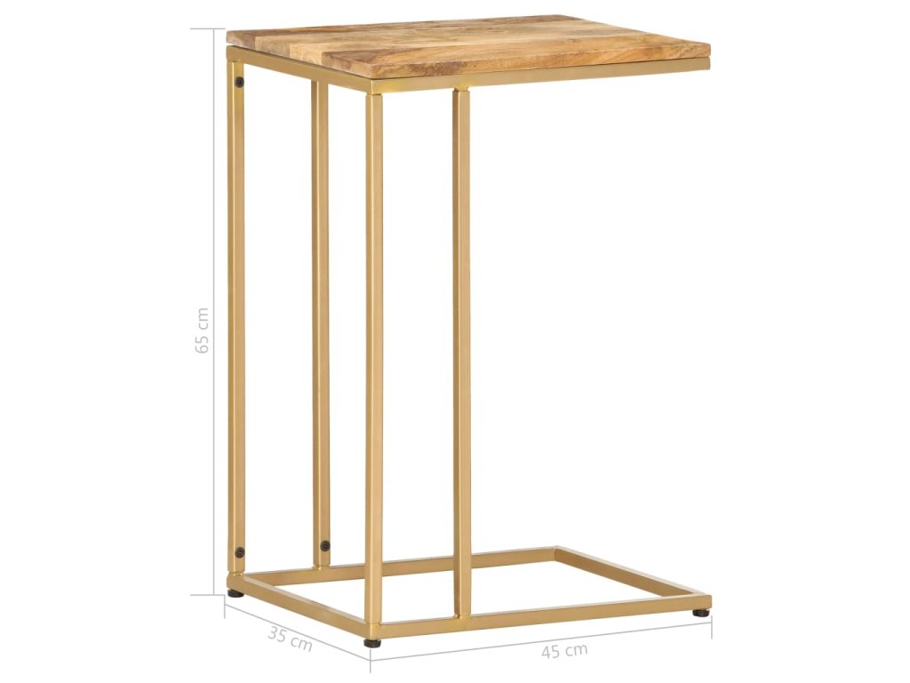 Tento stolík ku gauču je vyrobený z masívneho mangovníkového dreva s prírodným náterom, vďaka čomu je stabilný a bezpečný, aby ste na neho mohli položiť nápoje, ovocné koše alebo ozdobné predmety. Oceľový rám s práškovaným povrchom prispieva k jeho pevnej konštrukcii. Vďaka peknému remeselnému spracovaniu a drevnej štruktúre je každý kus nábytku charakteristický a mierne sa odlišuje od iných kusov. Každý krok procesu výroby sa vykonáva s najväčšou starostlivosťou, či už ide o leštenie, natieranie a lakovanie. Okrem toho sa jednoducho montuje.