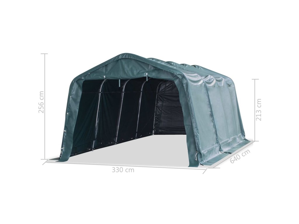 Kryt prístrešku a bočné panely sú vyrobené zo 100% PVC materiálu, ktorý je vodovzdorný a odolný voči UV žiareniu. K dispozícii sú 2 panely s dvierkami, pričom na každom z nich sa nachádza zips a rolovacie dvere pre ľahký prístup zvierat rôznej veľkosti. Tento rám bol vyrobený z ocele odolnej voči zhrdzaveniu, a preto je prístrešok veľmi trvácny.