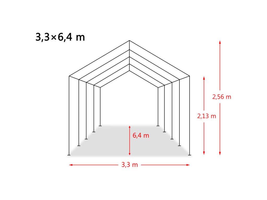 - Rozmery: 3,3 x 6,4 x 2,56 m (D x Š x V)