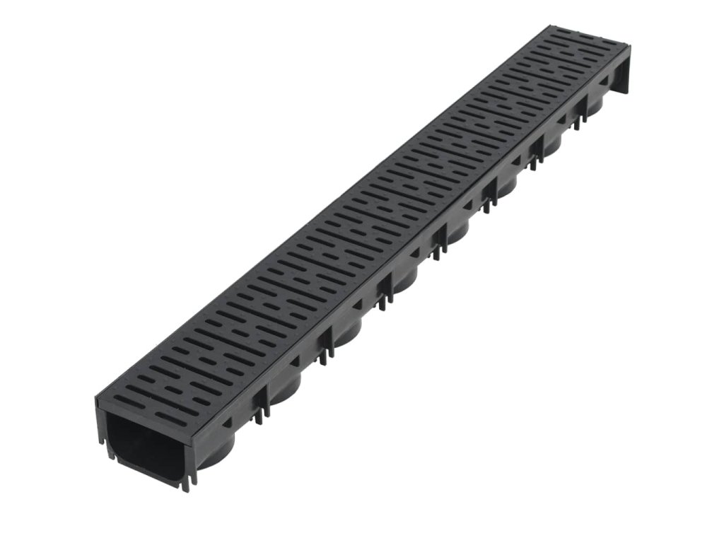 Každý žľab má jedinečný uzamykací systém, pomocou ktorého sa dajú jednotlivé žľaby k sebe pripojiť. Odvodňovací žľab je vyrobený z kvalitného plastu, vďaka čomu je odolný voči korózii, mrazu a teplu, je veľmi trvácny a určený na dlhodobé používanie.