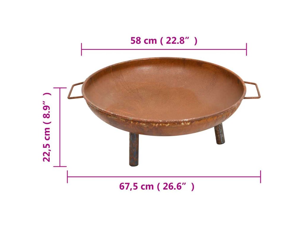 Ohnisko je vyrobené z ocele a krásne absorbuje a vyžaruje teplo. Tento krb má veľkú misu, ktorá umožňuje vytvoriť veľký oheň, ktorý si môžete vychutnávať vy a vaša rodina po celé hodiny. Misa na oheň má navyše dve rukoväte, aby ste ju mohli ľahko prenášať. Môžete tiež pridať grilovaciu mriežku (nie je v balení), aby ste ju mohli použiť aj na grilovanie.