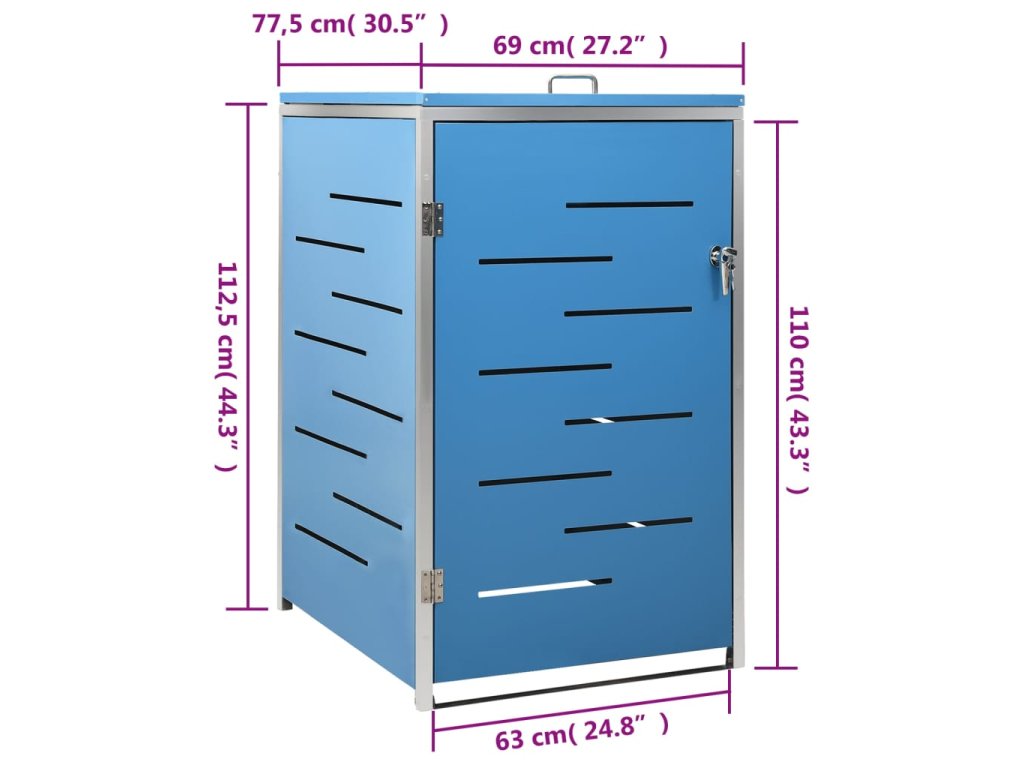 Tento prístrešok na odpadky je vyrobený z pozinkovaného oceľového panelu a rámu z nehrdzavejúcej ocele, vďaka čomu je mimoriadne robustný a odolný proti korózii. Konštrukcia umožňuje cirkuláciu vzduchu a zabraňuje vzniku nepríjemných pachov v odpadkovom boxe, zatiaľ čo uzamykací systém zabezpečuje bezpečné uloženie odpadu. Okrem toho, vkladanie a vyberanie odpadkového koša vám uľahčí praktické veko a pružiny.
