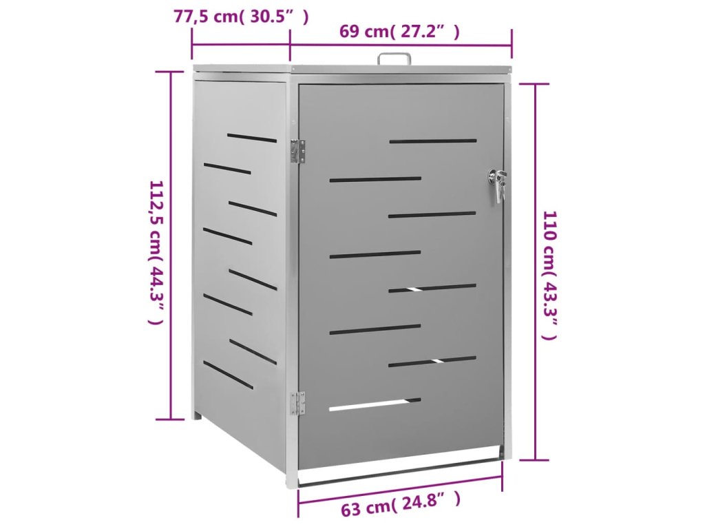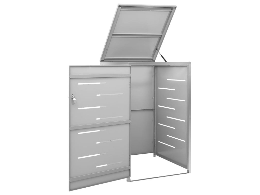Tento prístrešok na odpadky je vyrobený z pozinkovaného oceľového panelu a rámu z nehrdzavejúcej ocele, vďaka čomu je mimoriadne robustný a odolný proti korózii. Konštrukcia umožňuje cirkuláciu vzduchu a zabraňuje vzniku nepríjemných pachov v odpadkovom boxe, zatiaľ čo uzamykací systém zabezpečuje bezpečné uloženie odpadu. Okrem toho, vkladanie a vyberanie odpadkového koša vám uľahčí praktické veko a pružiny.