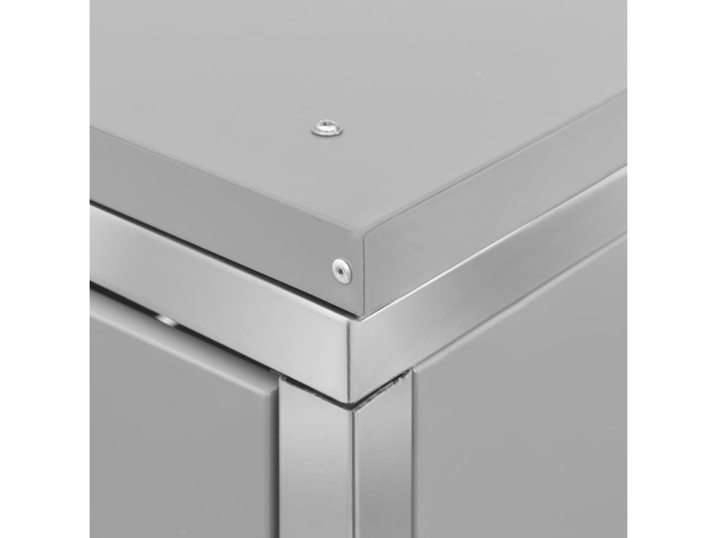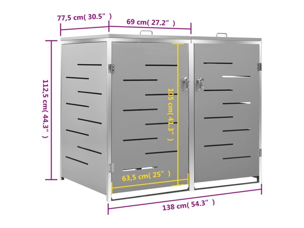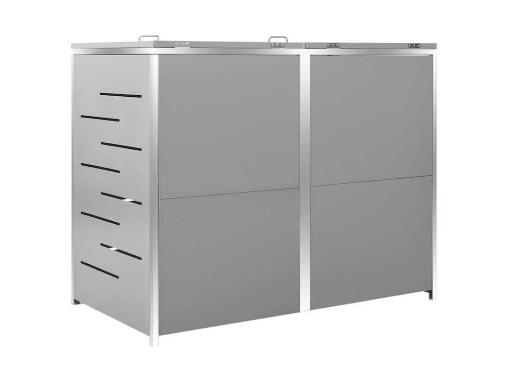 Tento prístrešok na odpadky je vyrobený z pozinkovaného oceľového panelu a rámu z nehrdzavejúcej ocele, vďaka čomu je mimoriadne robustný a odolný proti korózii. Konštrukcia umožňuje cirkuláciu vzduchu a zabraňuje vzniku nepríjemných pachov v odpadkovom boxe, zatiaľ čo uzamykací systém zabezpečuje bezpečné uloženie odpadu. Okrem toho, vkladanie a vyberanie odpadkového koša vám uľahčí praktické veko a pružiny.