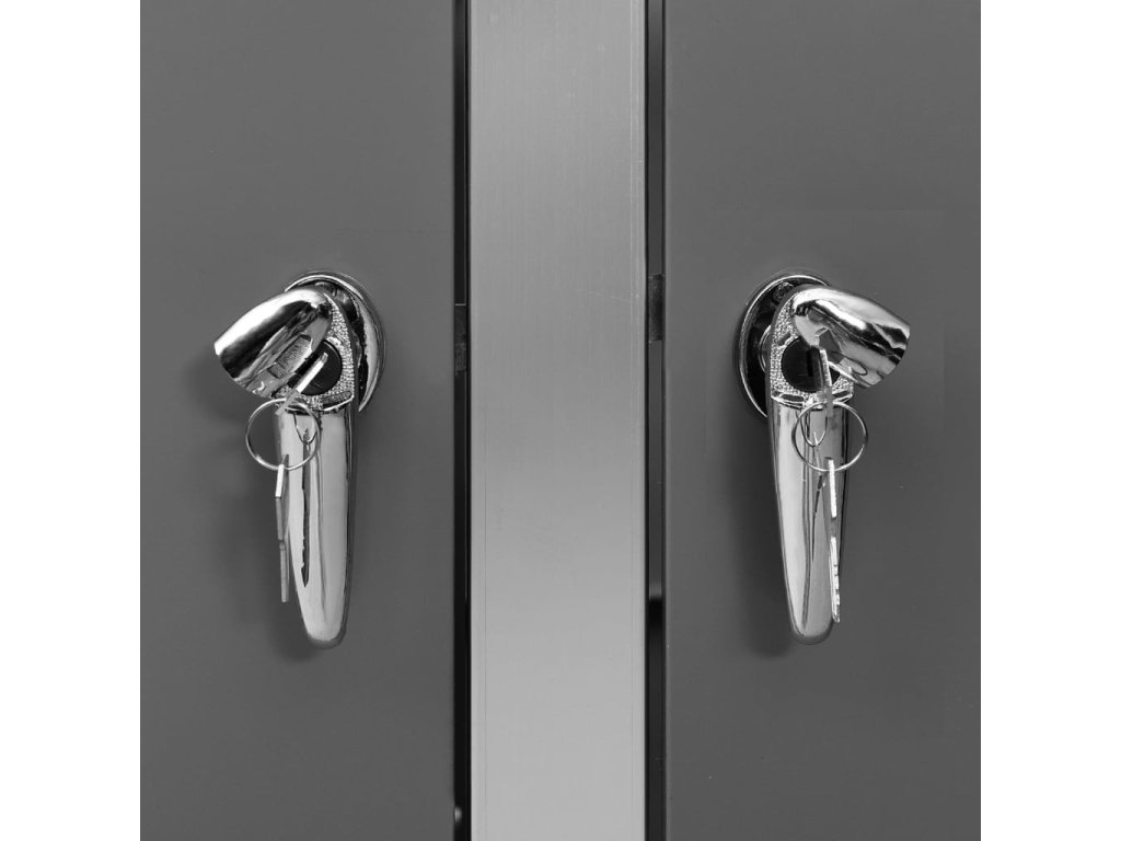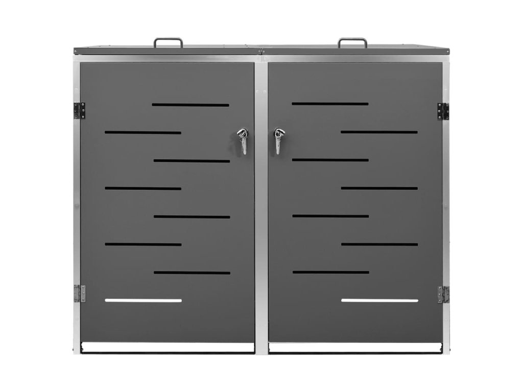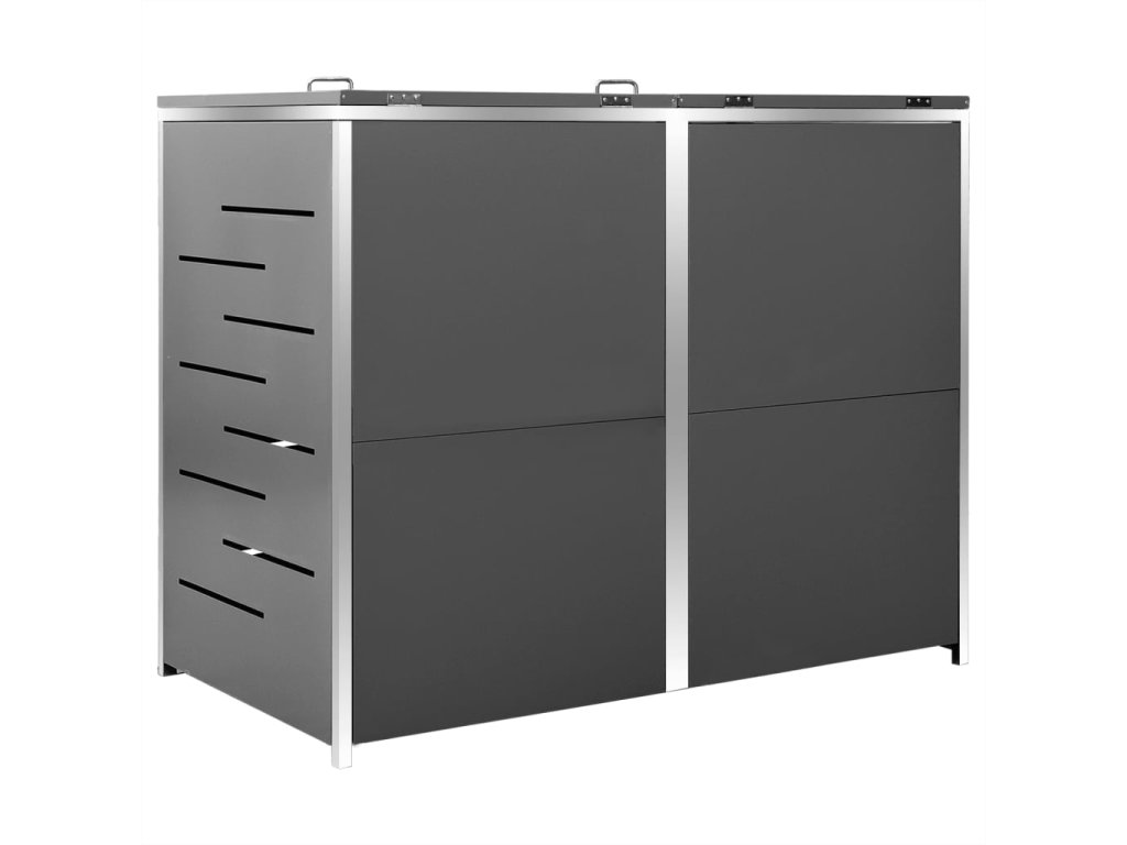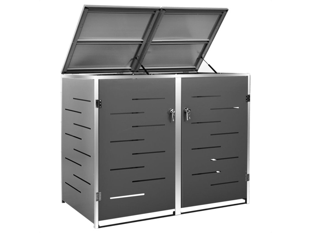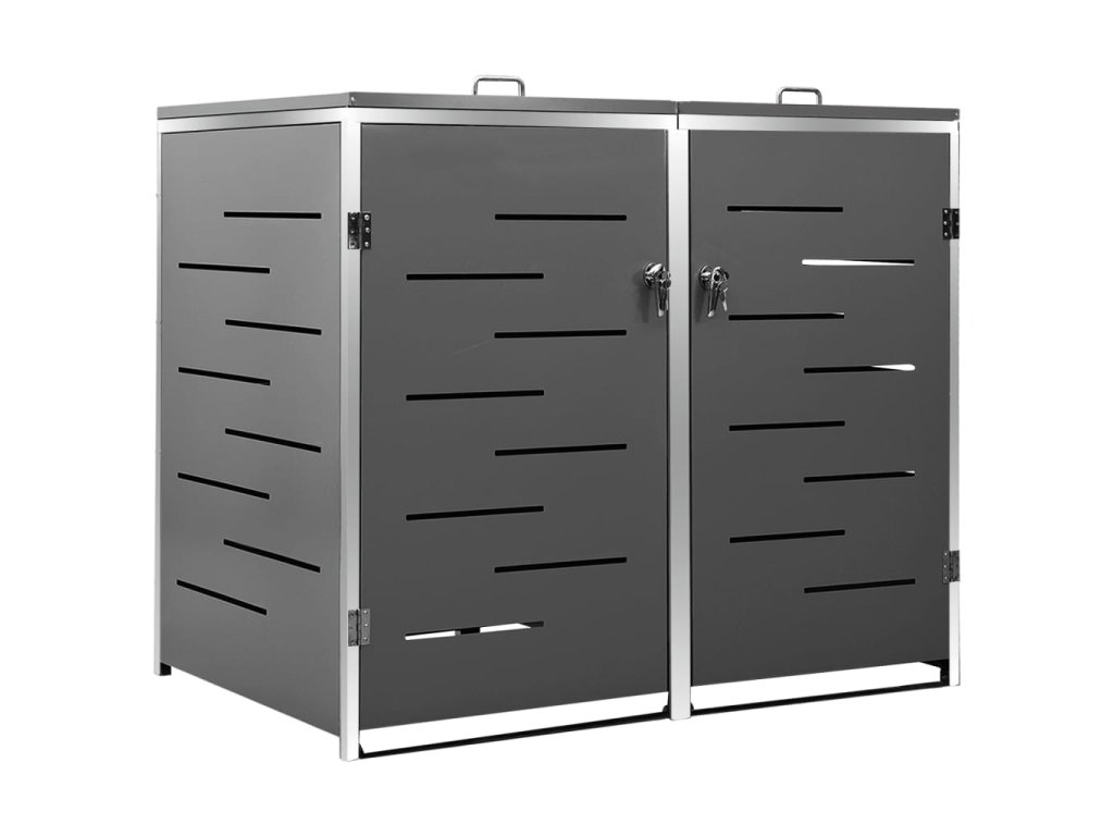 Tento prístrešok na odpadky je vyrobený z pozinkovaného oceľového panelu a rámu z nehrdzavejúcej ocele, vďaka čomu je mimoriadne robustný a odolný proti korózii. Konštrukcia umožňuje cirkuláciu vzduchu a zabraňuje vzniku nepríjemných pachov v odpadkovom boxe, zatiaľ čo uzamykací systém zabezpečuje bezpečné uloženie odpadu. Okrem toho, vkladanie a vyberanie odpadkového koša vám uľahčí praktické veko a pružiny.