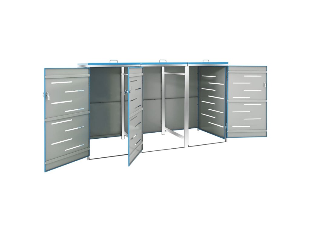 Tento prístrešok na odpadky je vyrobený z pozinkovaného oceľového panelu a rámu z nehrdzavejúcej ocele, vďaka čomu je mimoriadne robustný a odolný proti korózii. Konštrukcia umožňuje cirkuláciu vzduchu a zabraňuje vzniku nepríjemných pachov v odpadkovom boxe, zatiaľ čo uzamykací systém zabezpečuje bezpečné uloženie odpadu. Okrem toho, vkladanie a vyberanie odpadkového koša vám uľahčí praktické veko a pružiny.
