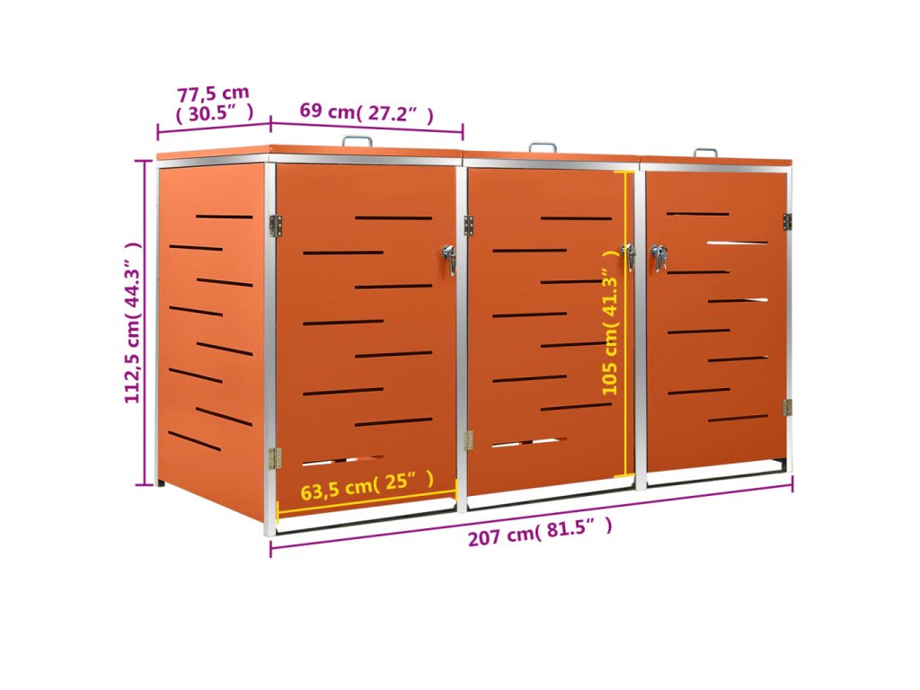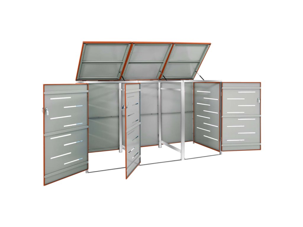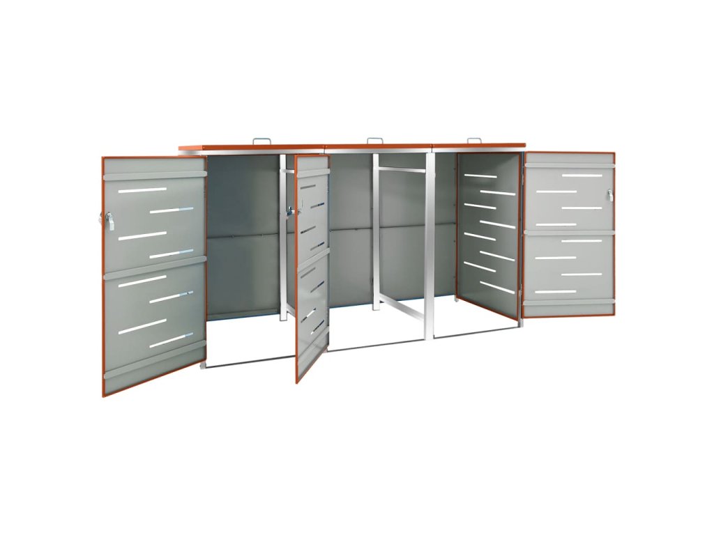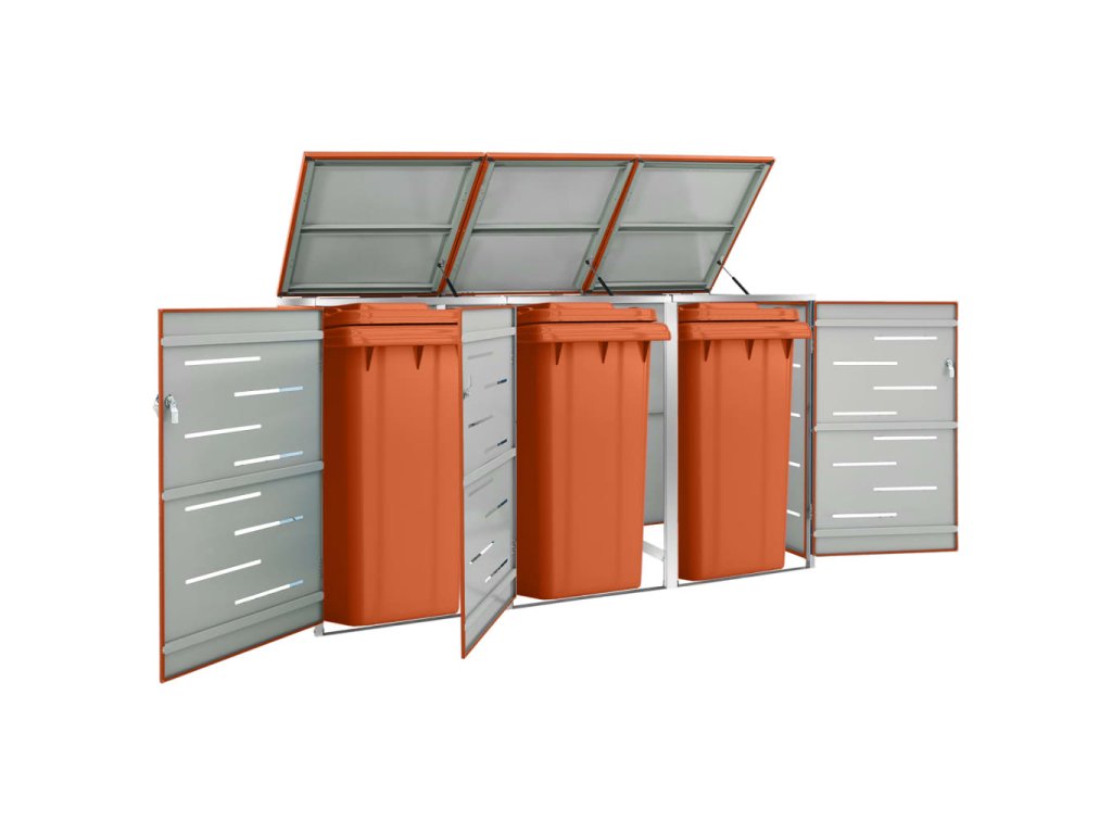 Tento prístrešok na odpadky je vyrobený z pozinkovaného oceľového panelu a rámu z nehrdzavejúcej ocele, vďaka čomu je mimoriadne robustný a odolný proti korózii. Konštrukcia umožňuje cirkuláciu vzduchu a zabraňuje vzniku nepríjemných pachov v odpadkovom boxe, zatiaľ čo uzamykací systém zabezpečuje bezpečné uloženie odpadu. Okrem toho, vkladanie a vyberanie odpadkového koša vám uľahčí praktické veko a pružiny.