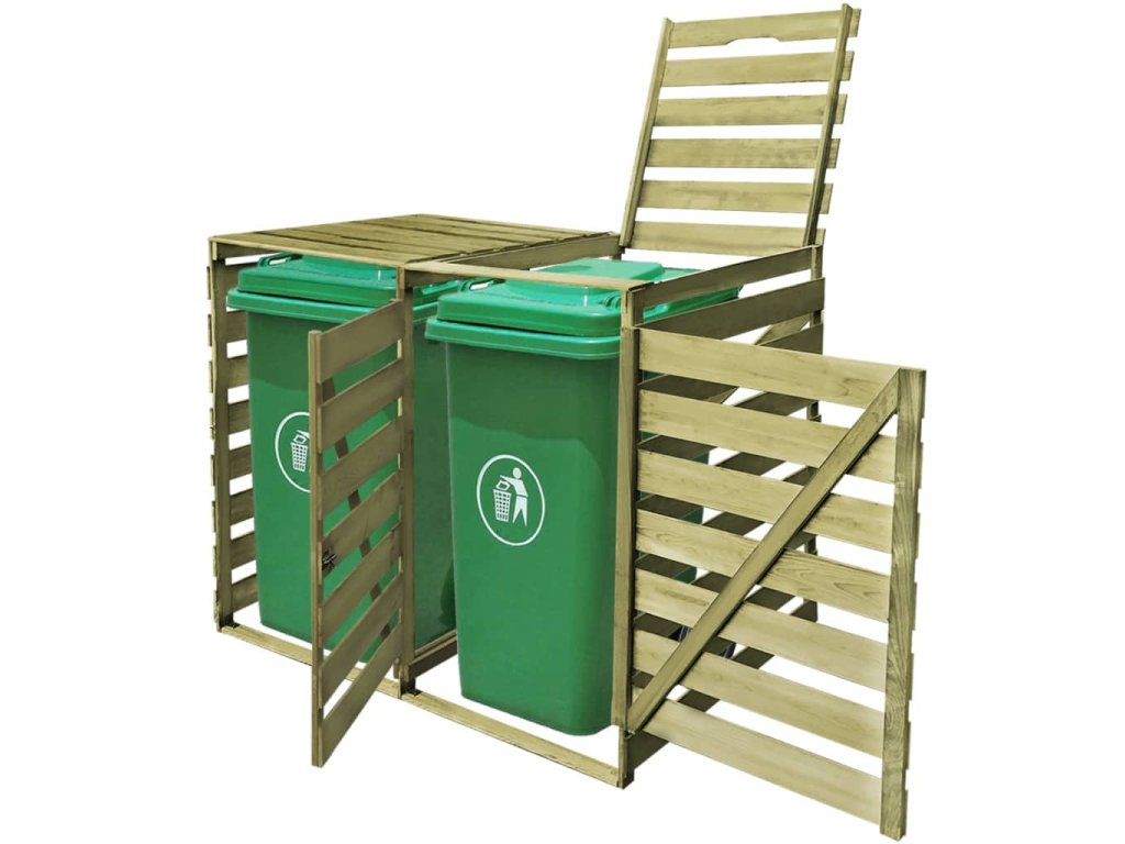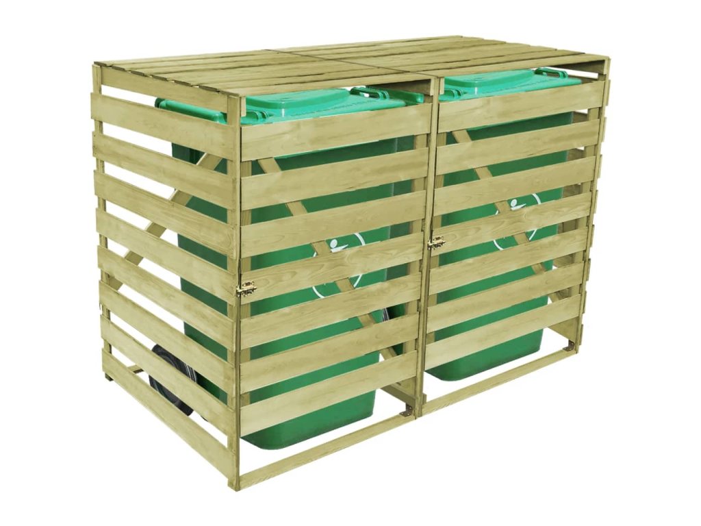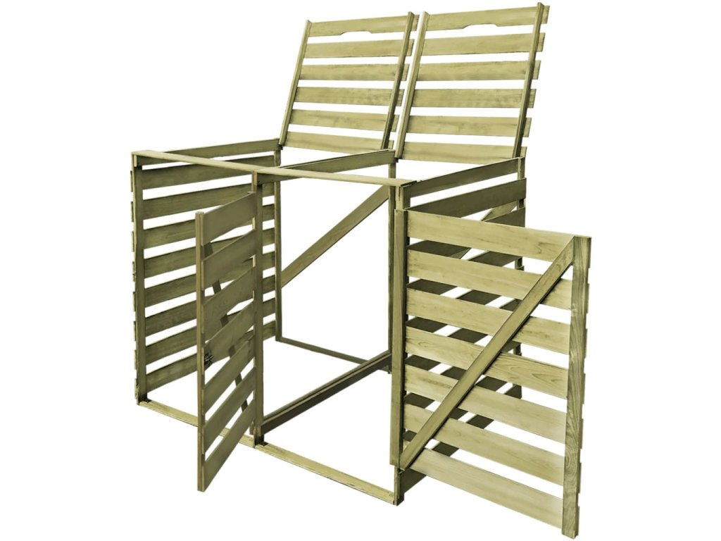 Ohrada je vyrobená z borovicového dreva so zelenou impregnáciou, vďaka čomu je skutočne pevná, trvácna a odolná voči hnilobe. Zmestia sa do nej 2 x odpadkové koše s objemom 240 l (s max. výškou 115 cm). Tento prístrešok sa zaručene bude hodiť do každej záhrady. Poznámka: Odpadkové koše nie sú súčasťou balenia.