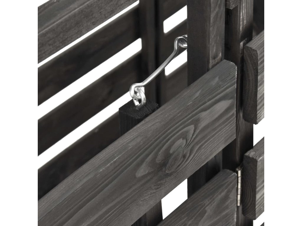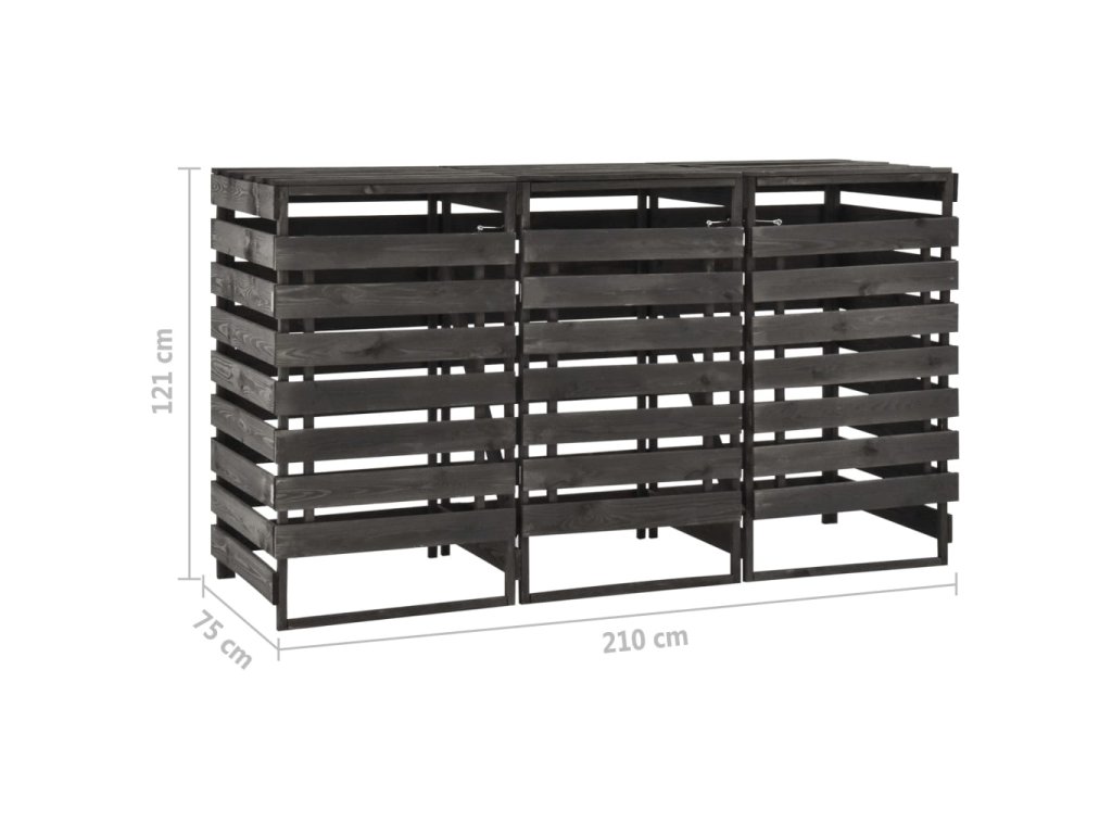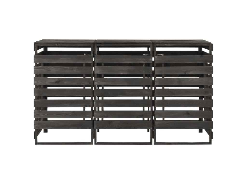 Prístrešok má veká, ktoré sa dajú jednoducho zdvihnúť, takže budete mať ku košom jednoduchý prístup vždy, keď budete chcieť vysypať smeti. Vpredu sa nachádzajú troje dvierka, ktoré sa tiež dajú otvoriť osobitne, aby ste mohli kôš bez problémov vybrať a vysypať. Tie sú navyše vybavené zámkami, takže budú vždy bezpečne uzavreté. Ohrada je vyrobená z borovicového masívu s náterom, vďaka čomu je skutočne pevná, trvácna a odolná voči hnilobe. Zmestí sa do nej 3 x odpadkové koše s objemom 240 l. Tento prístrešok sa zaručene bude hodiť do každej záhrady.