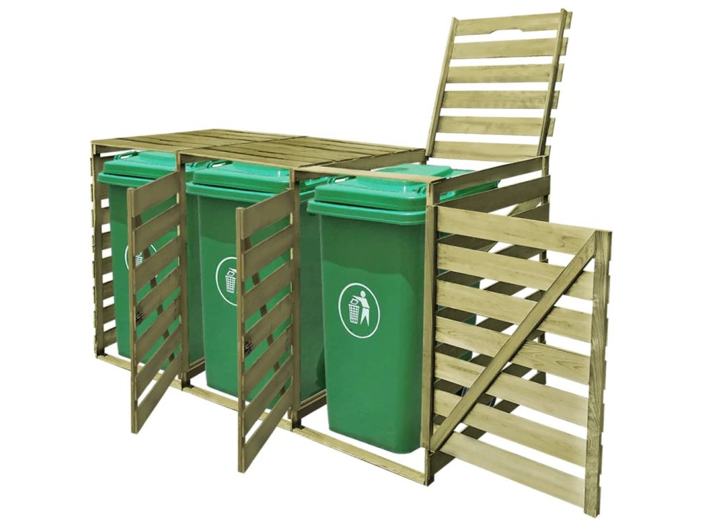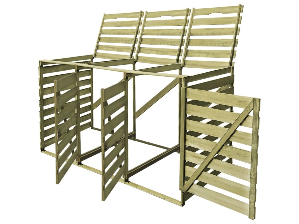 Ohrada je vyrobená z borovicového dreva so zelenou impregnáciou, vďaka čomu je skutočne pevná, trvácna a odolná voči hnilobe. Zmestia sa do nej 3 x odpadkové koše s objemom 240 l (s max. výškou 115 cm). Tento prístrešok sa zaručene bude hodiť do každej záhrady. Poznámka: Odpadkové koše nie sú súčasťou balenia.
