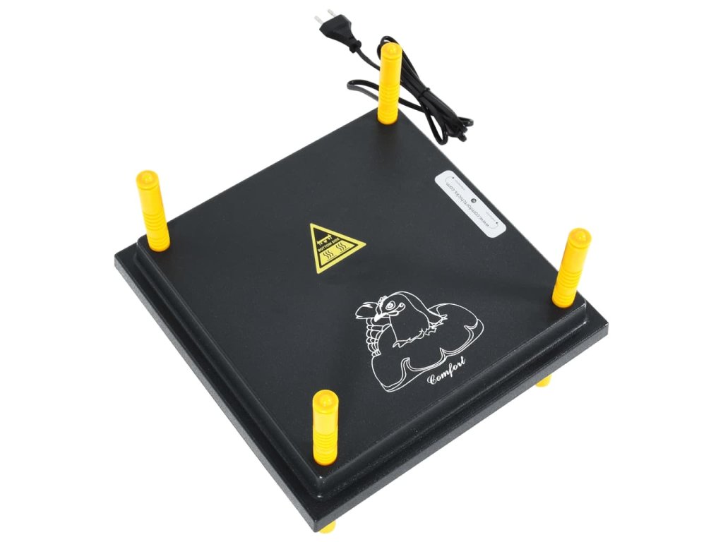 Výhrevná platnička je vhodná pre približne 20 až 25 mláďat a poskytuje náhradu prirodzeného tepla matky. Výhodou je, že mláďatá dokážu nájsť teplo samy, keď ho potrebujú. Doska sa dá ľahko nastaviť tak, aby presne vyhovovala požiadavkám mláďat, a to stlačením žltých rýchloupínacích svoriek na spodnej strane dosky. Táto umelá kvočka pre kuriatka spotrebuje oveľa menej energie ako tepelná lampa, vďaka čomu je jej používanie úsporné. Je vybavená teplotnou poistkou a odporovou poistkou pre dvojitú bezpečnosť. Dodávaný regulátor teploty tiež zabezpečí, že vaše mláďatá budú v príjemnom teple.