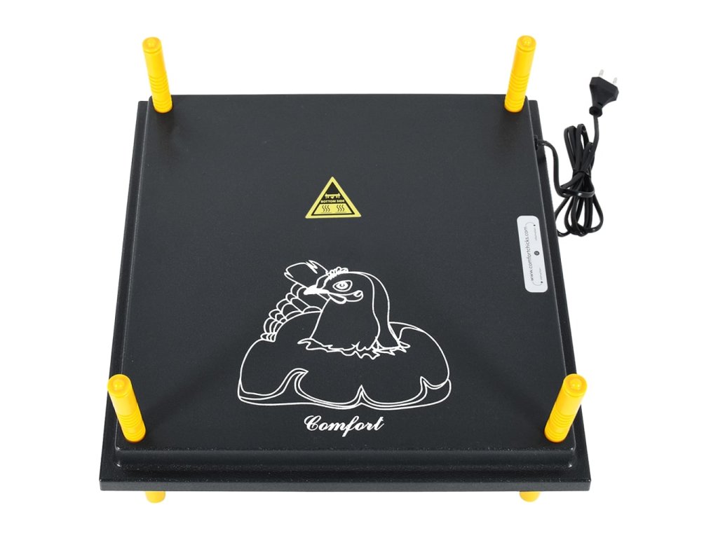 Výhrevná platnička je vhodná pre približne 30 až 35 mláďat a poskytuje náhradu prirodzeného tepla matky. Výhodou je, že mláďatá dokážu nájsť teplo samy, keď ho potrebujú. Doska sa dá ľahko nastaviť tak, aby presne vyhovovala požiadavkám mláďat, a to stlačením žltých rýchloupínacích svoriek na spodnej strane dosky. Táto umelá kvočka pre kuriatka spotrebuje oveľa menej energie ako tepelná lampa, vďaka čomu je jej používanie úsporné. Je vybavená teplotnou poistkou a odporovou poistkou pre dvojitú bezpečnosť. Dodávaný regulátor teploty tiež zabezpečí, že vaše mláďatá budú v príjemnom teple.