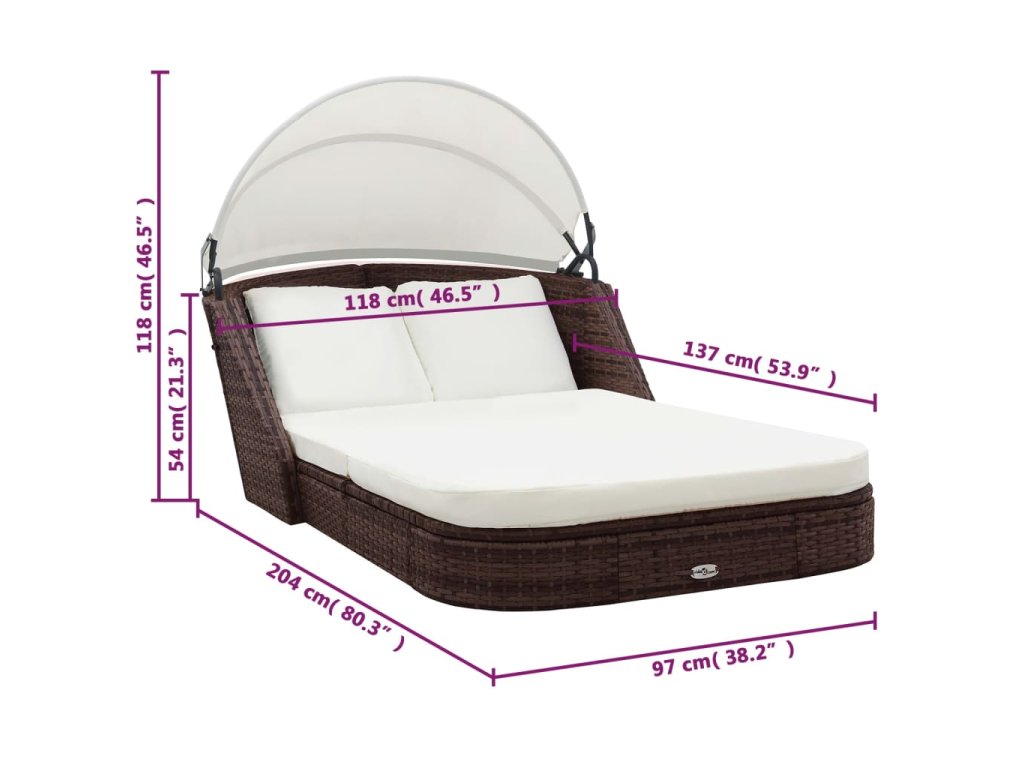 - Celkové rozmery (bez baldachýnu): 204 x 118 x 54 cm (D x Š x V)
