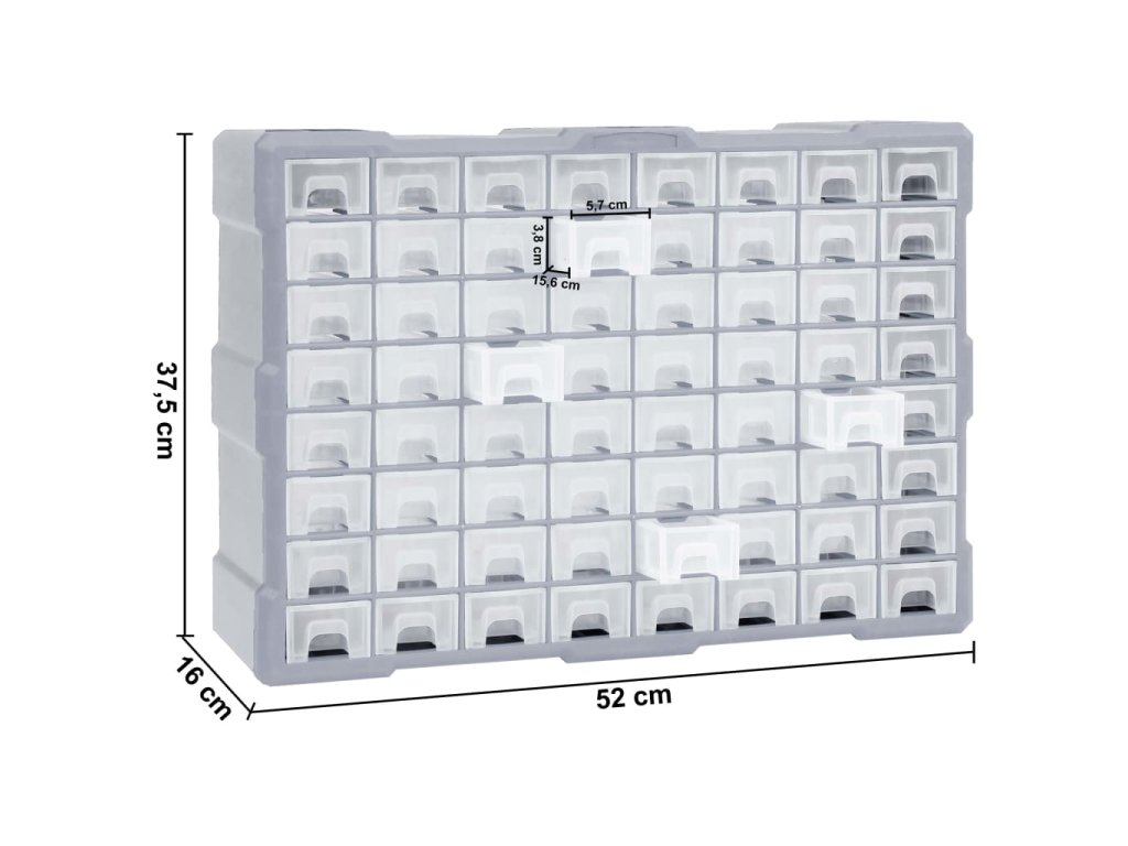 Tento organizér so 64 zásuvkami predstavuje neoceniteľný doplnok do domácnosti. Je ako stvorený na prehľadné odkladanie rôznych predmetov a môžete ho využívať aj ako skrinku na šitie či klince.