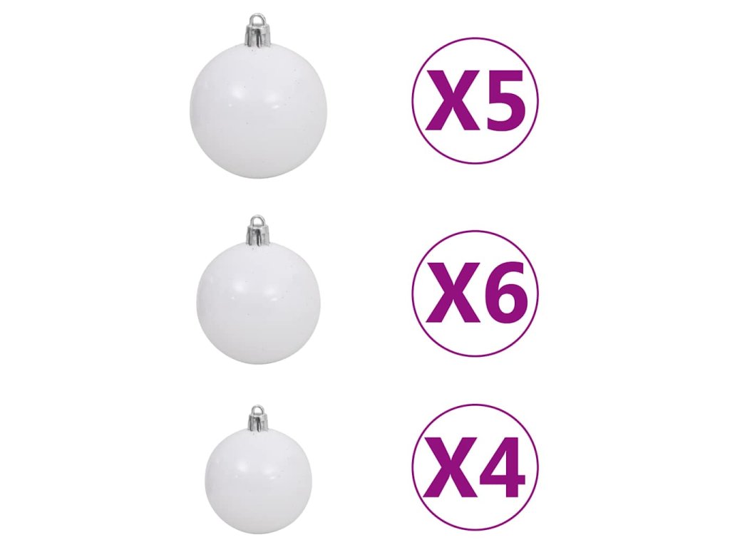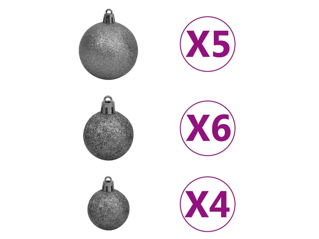 Realistický stromček má PE vetvičky v tvare ihličia, ktoré sú vyrobené vstrekovaním. Je ľahký, odolný voči poveternostným vplyvom a trvácny. Tento krásny vianočný stromček je odolný voči vode. Vetvičky s ihličím sa dajú upravovať do akéhokoľvek tvaru. Tento vianočný stromček môžete na rozdiel od živého používať opakovane každý rok, takže predstavuje výbornú alternatívu pre všetkých, ktorí chcú počas vianočných sviatkov ušetriť. Súčasťou je aj oceľový podstavec, ktorý dodáva stromčeku stabilitu. Vďaka energeticky úsporným LED svetlám sa krásne rozsvieti a vytvorí útulnú sviatočnú atmosféru. Tento vianočný stromček, ozdobený nádherným špicom a guľami, vytvorí vo vašej domácnosti pútavý prvok.