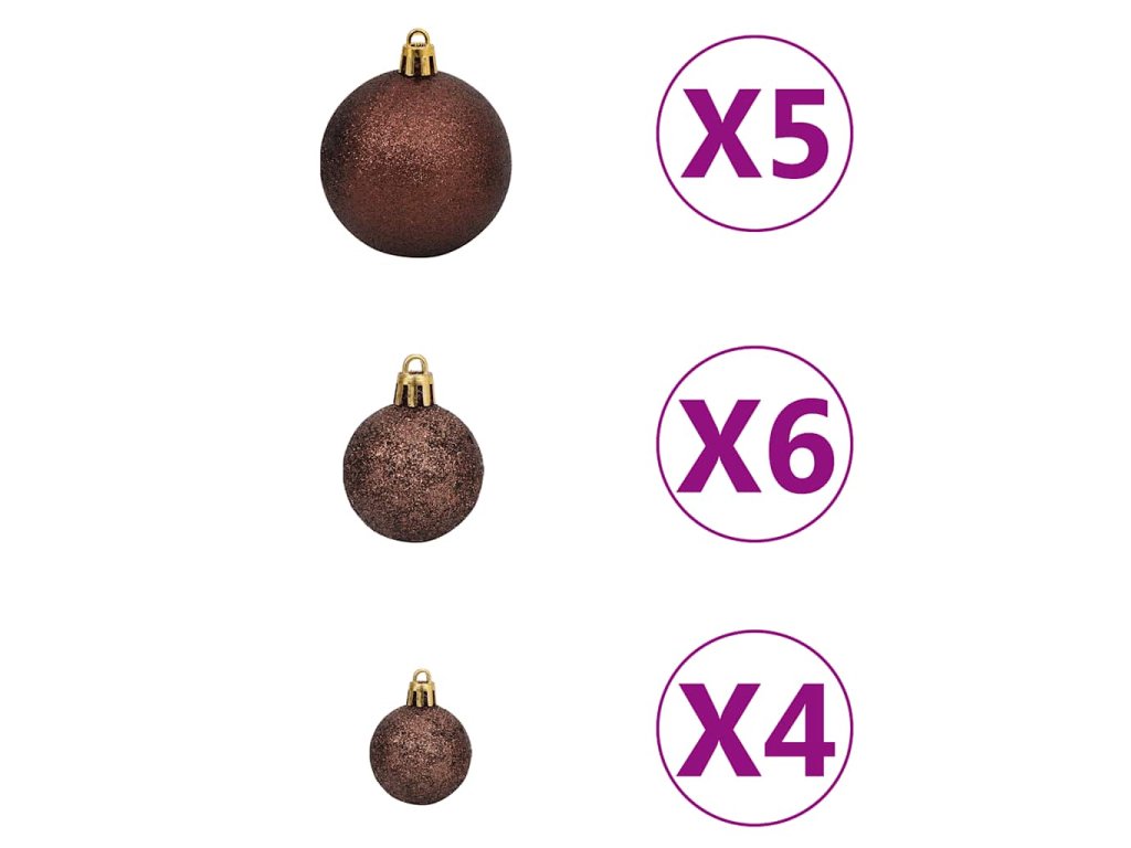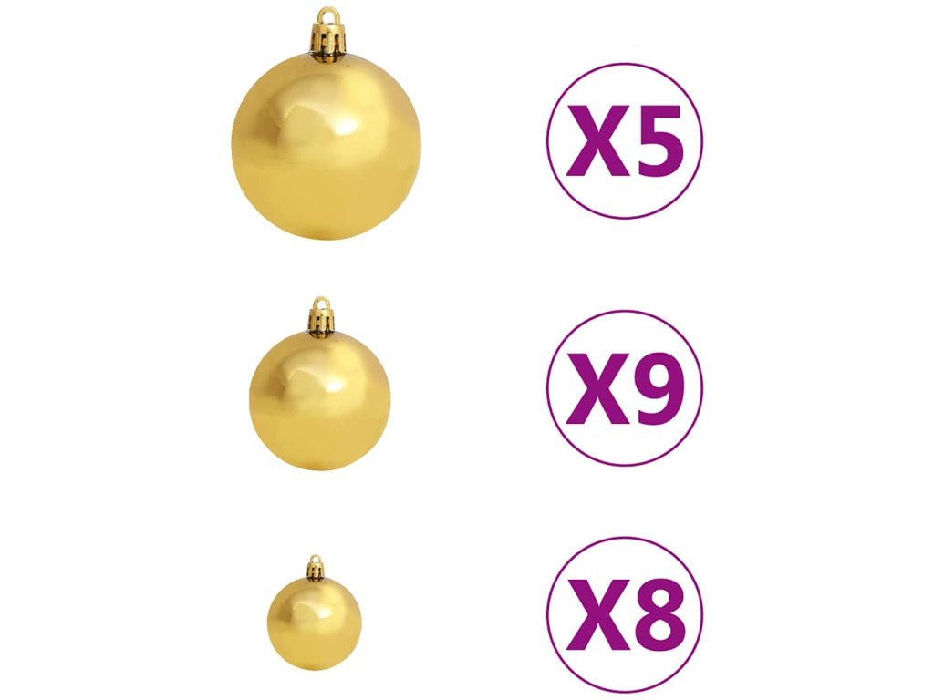 Realistický stromček má PE vetvičky v tvare ihličia, ktoré sú vyrobené vstrekovaním. Je ľahký, odolný voči poveternostným vplyvom a trvácny. Tento krásny vianočný stromček je odolný voči vode. Vetvičky s ihličím sa dajú upravovať do akéhokoľvek tvaru. Tento vianočný stromček môžete na rozdiel od živého používať opakovane každý rok, takže predstavuje výbornú alternatívu pre všetkých, ktorí chcú počas vianočných sviatkov ušetriť. Súčasťou je aj oceľový podstavec, ktorý dodáva stromčeku stabilitu. Vďaka energeticky úsporným LED svetlám sa krásne rozsvieti a vytvorí útulnú sviatočnú atmosféru. Tento vianočný stromček, ozdobený nádherným špicom a guľami, vytvorí vo vašej domácnosti pútavý prvok.