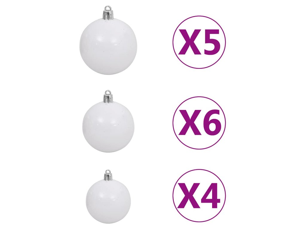 Realistický stromček má PE vetvičky v tvare ihličia, ktoré sú vyrobené vstrekovaním. Je ľahký, odolný voči poveternostným vplyvom a trvácny. Tento krásny vianočný stromček je odolný voči vode. Vetvičky s ihličím sa dajú upravovať do akéhokoľvek tvaru. Tento vianočný stromček môžete na rozdiel od živého používať opakovane každý rok, takže predstavuje výbornú alternatívu pre všetkých, ktorí chcú počas vianočných sviatkov ušetriť. Vďaka energeticky úsporným LED svetlám sa krásne rozsvieti a vytvorí útulnú sviatočnú atmosféru. Tento vianočný stromček, ozdobený nádherným špicom a guľami, vytvorí vo vašej domácnosti pútavý prvok.