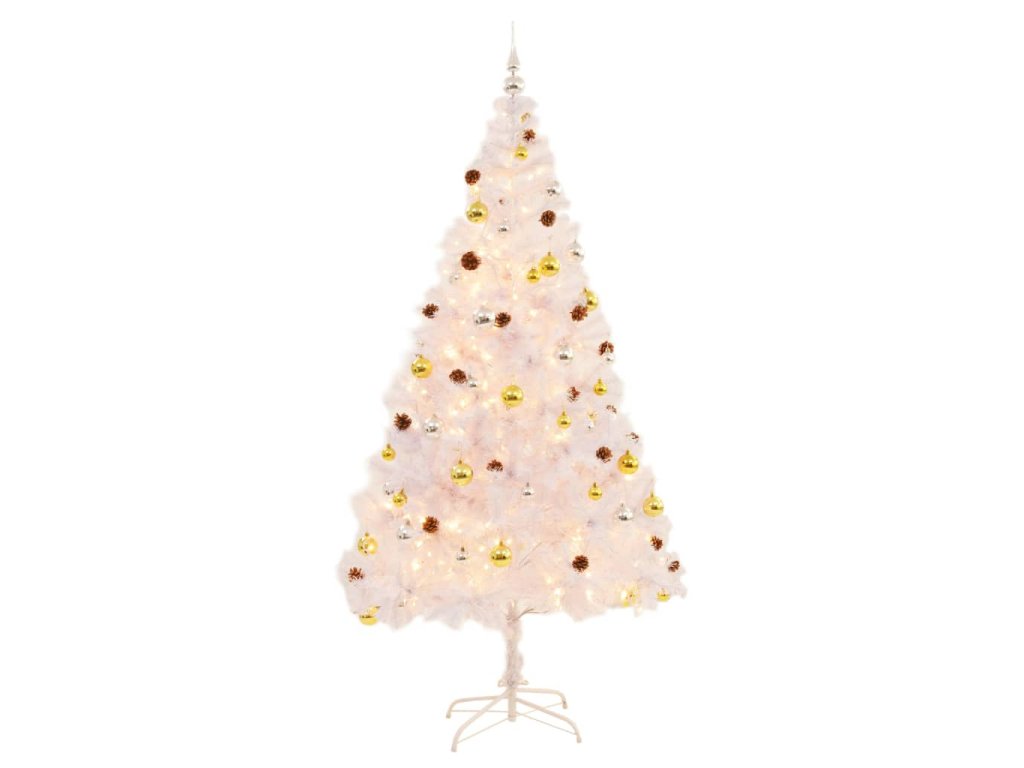 Kompletne vyzdobený vianočný stromček so štýlovo osvetlenými vetvičkami a farebnými ozdobami vytvorí príjemnú vianočnú atmosféru.