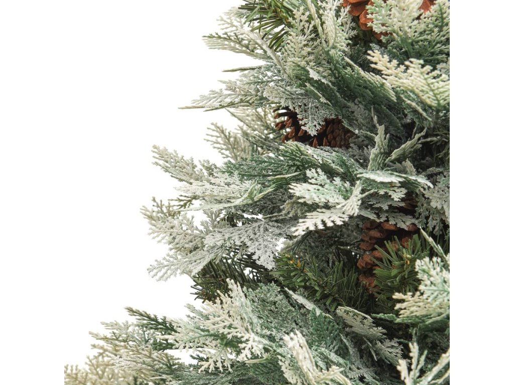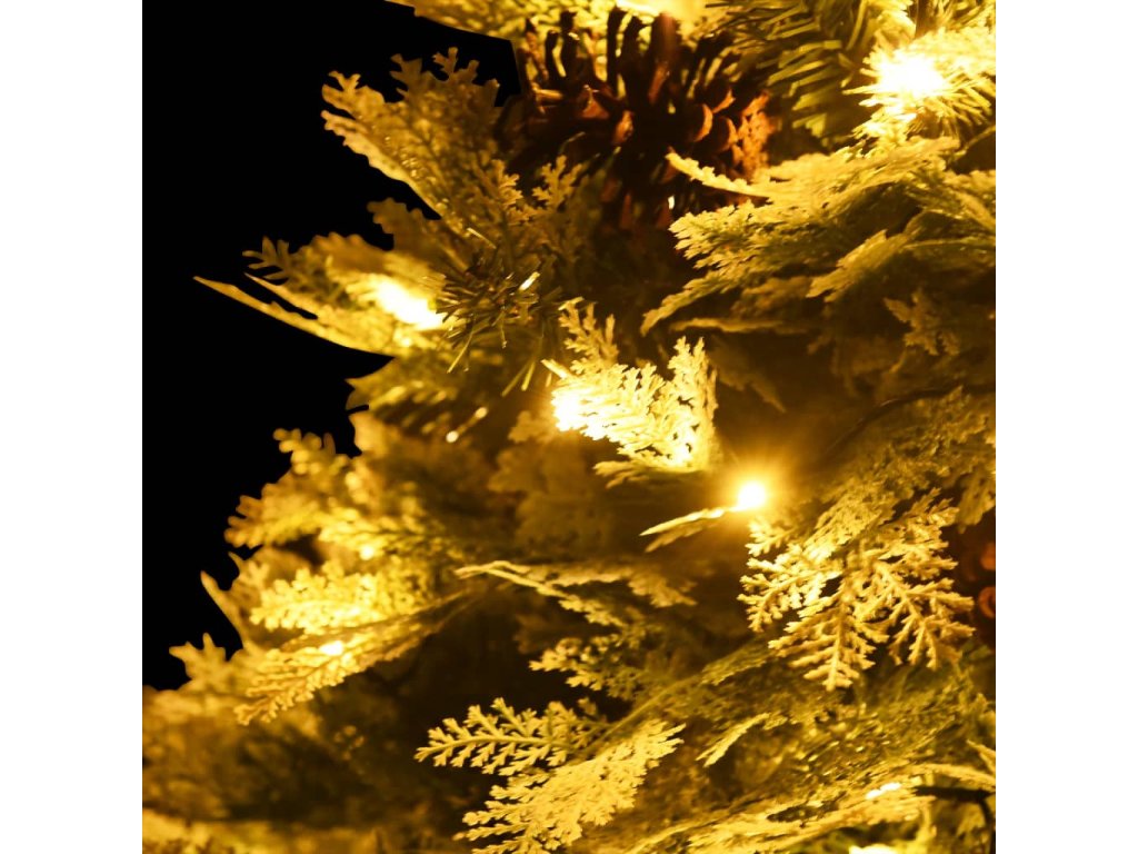 Tento krásny vianočný stromček má vetvičky vyrobené z PVC a PE. Priložený oceľový stojan poskytuje stromčeku optimálnu stabilitu. Vďaka energeticky úsporným LED svetlám sa krásne rozsvieti a vytvorí útulnú sviatočnú atmosféru. Vďaka šiškám na ihličí tento vianočný stromček oživí každý domov. Vetvičky stromčeka sú pripevnené na stredovej tyči pomocou závesného systému a vetvičky sa automaticky posunú do správnej polohy.