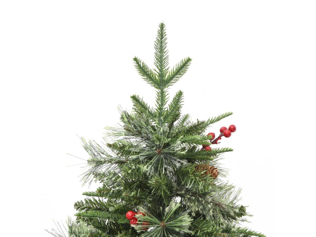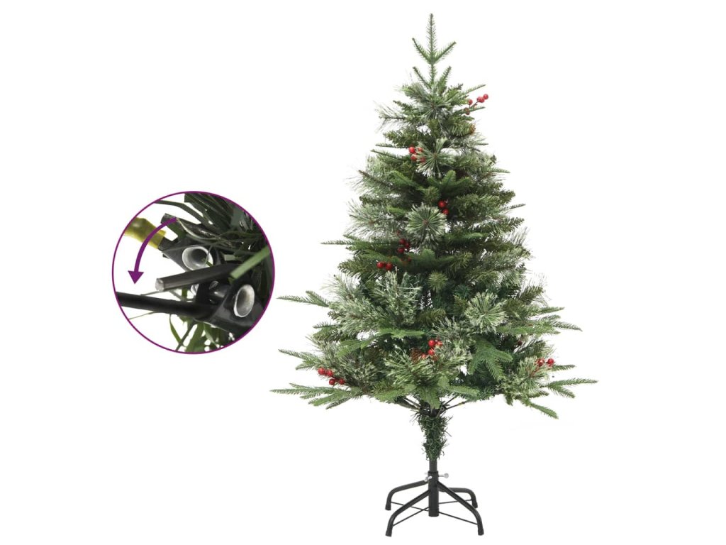 Tento krásny vianočný stromček má vetvičky vyrobené z PVC a PE. Priložený oceľový stojan navyše poskytuje stromčeku optimálnu stabilitu. Vďaka energeticky úsporným LED svetlám sa krásne rozsvieti a vytvorí útulnú sviatočnú atmosféru. Vďaka šiškám a červeným bobuliam na ihličí tento vianočný stromček oživí každý domov. Vetvičky stromčeka sú pripevnené na stredovej tyči pomocou závesného systému. Vďaka závesom sa vetvy automaticky posunú do správnej polohy.