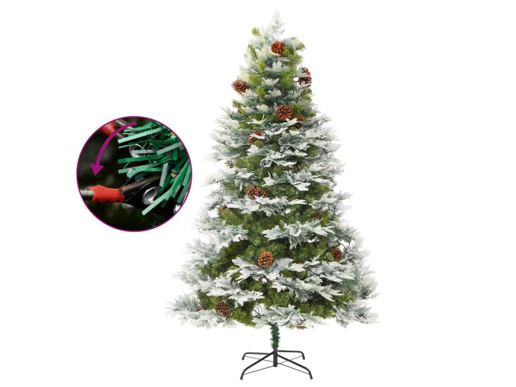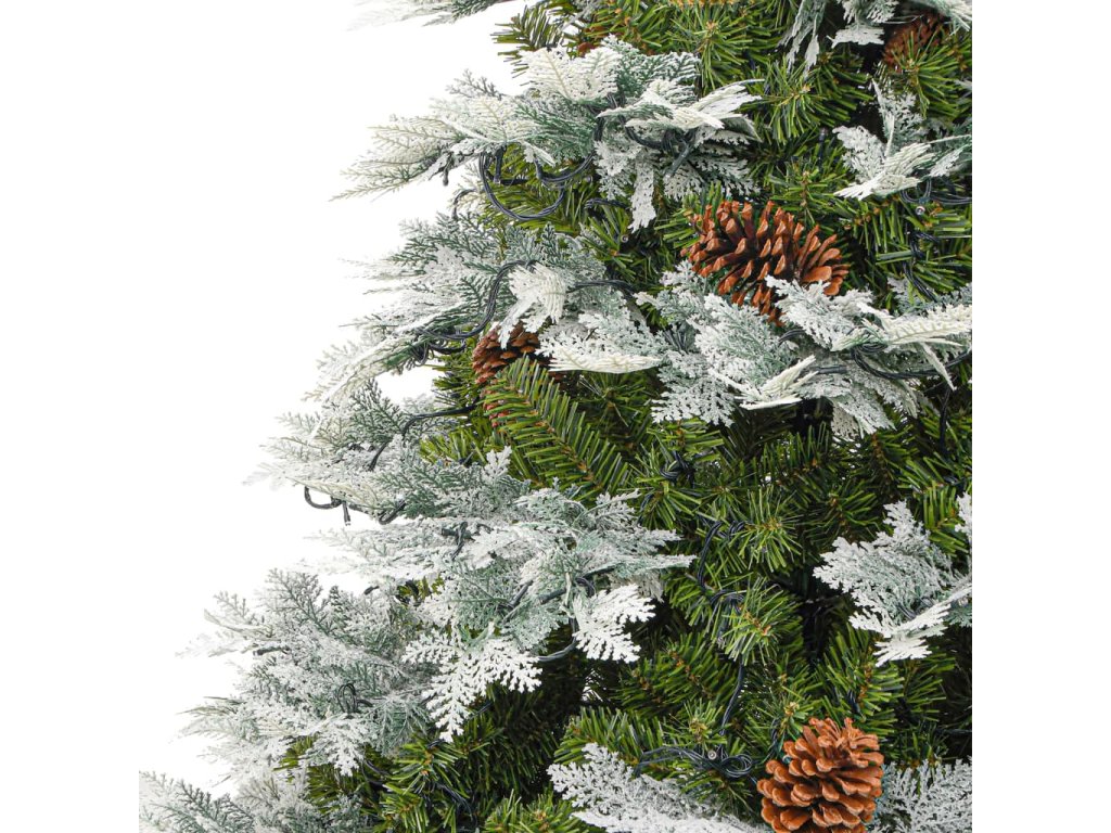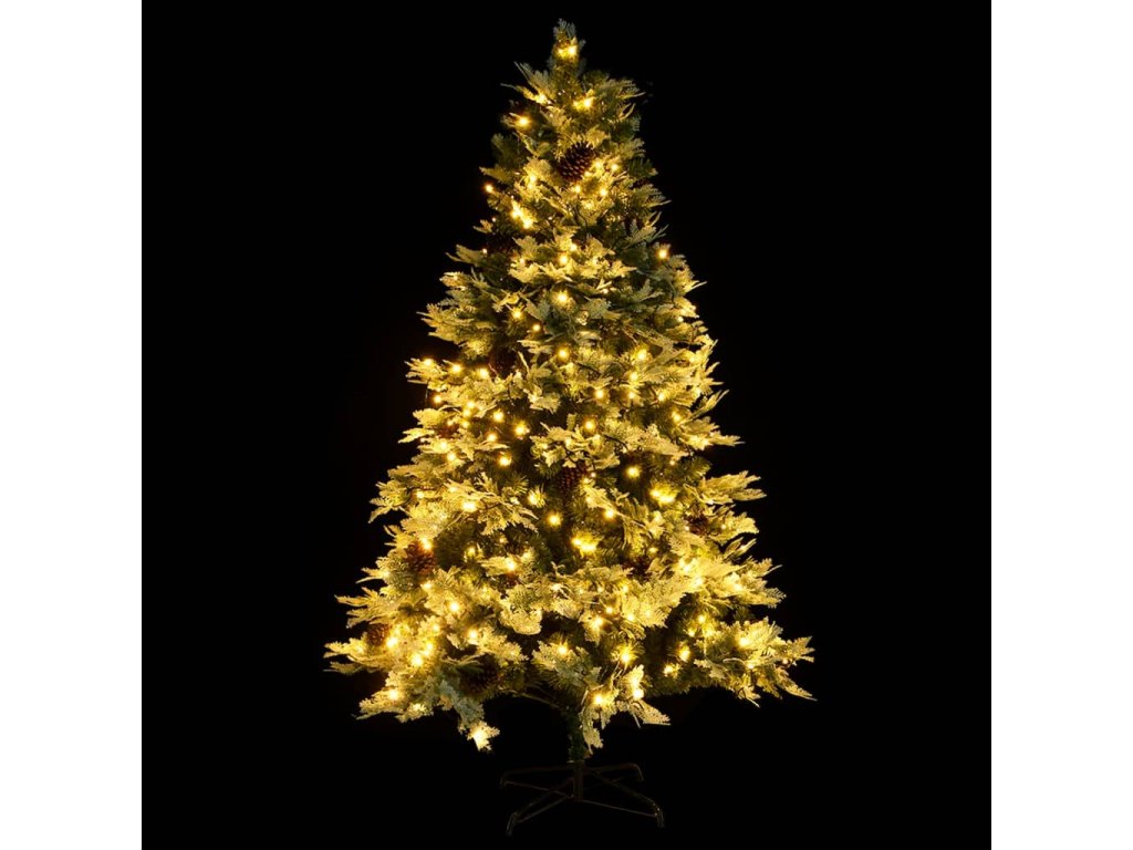 Tento krásny vianočný stromček má vetvičky vyrobené z PVC a PE. Priložený oceľový stojan poskytuje stromčeku optimálnu stabilitu. Vďaka energeticky úsporným LED svetlám sa krásne rozsvieti a vytvorí útulnú sviatočnú atmosféru. Vďaka šiškám na ihličí tento vianočný stromček oživí každý domov. Vetvičky stromčeka sú pripevnené na stredovej tyči pomocou závesného systému a vetvičky sa automaticky posunú do správnej polohy.
