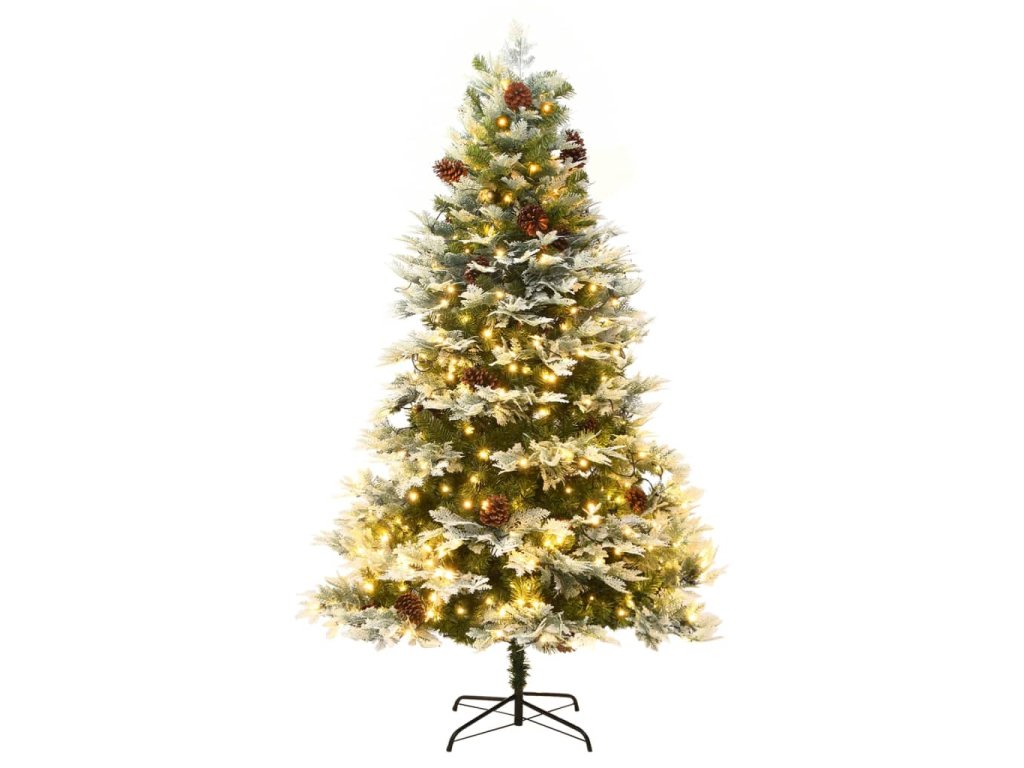 Tento krásny vianočný stromček má vetvičky vyrobené z PVC a PE. Priložený oceľový stojan poskytuje stromčeku optimálnu stabilitu. Vďaka energeticky úsporným LED svetlám sa krásne rozsvieti a vytvorí útulnú sviatočnú atmosféru. Vďaka šiškám na ihličí tento vianočný stromček oživí každý domov. Vetvičky stromčeka sú pripevnené na stredovej tyči pomocou závesného systému a vetvičky sa automaticky posunú do správnej polohy.