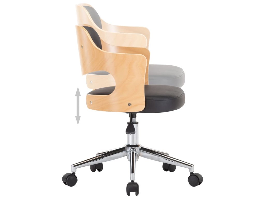 Sedadlo a operadlo sú potiahnuté mäkkou umelou kožou s hustou výplňou, ktorá sa ľahko čistí, a tak vám poskytnú optimálne pohodlie. Drevený rám stoličke dodáva potrebnú stabilitu. Operadlo a sedadlo zabezpečujú potrebnú oporu pre chrbát a minimalizujú tlak na chrbticu. Stolička je vybavená 5 otočnými kolieskami, a tak ju môžete bez problémov premiestniť. Výšku sedadla môžete nastaviť pomocou praktického plynového piesta. Tieto príručné stoličky predstavujú štýlový doplnok do domu či kancelárie.