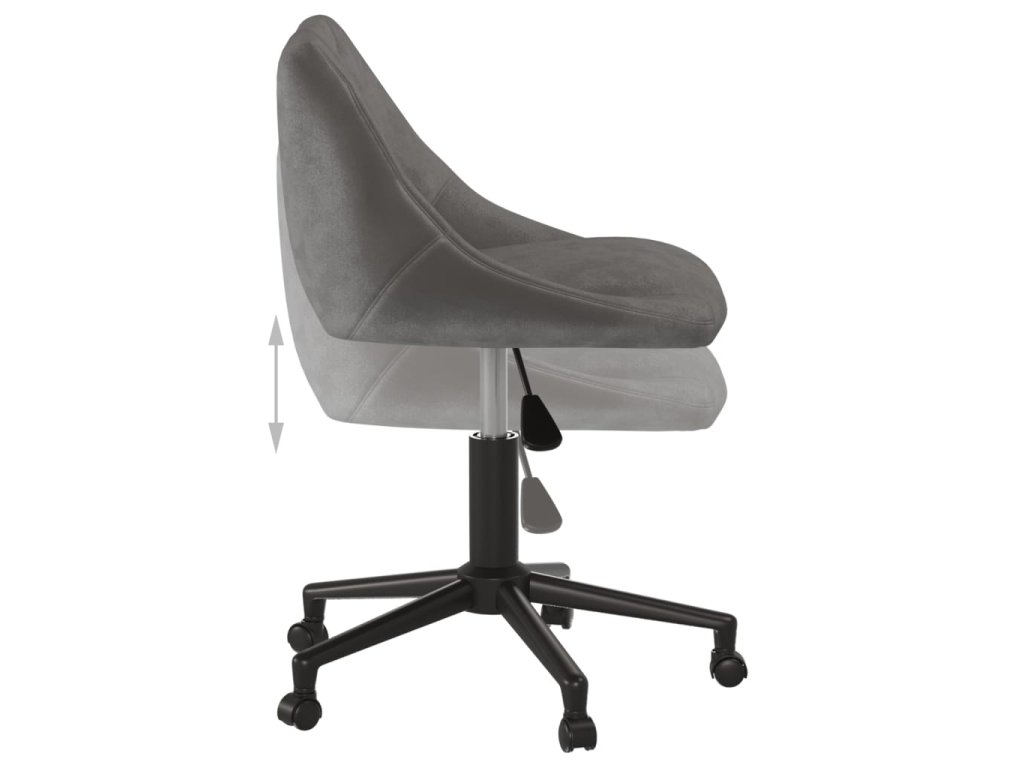 Táto kancelárska stolička je čalúnená na dotyk mäkkým zamatom, ktorý vám prinesie optimálne pohodlie počas sedenia. Čierny práškovaný oceľový rám dodáva stoličke vysokú odolnosť a stabilitu. Vďaka mechanizmu plynového piestu je sedadlo aj výškovo nastaviteľné. Okrem toho sa sedadlo môže otáčať o 360 stupňov a kolieska vám umožnia voľný pohyb v rôznych smeroch.