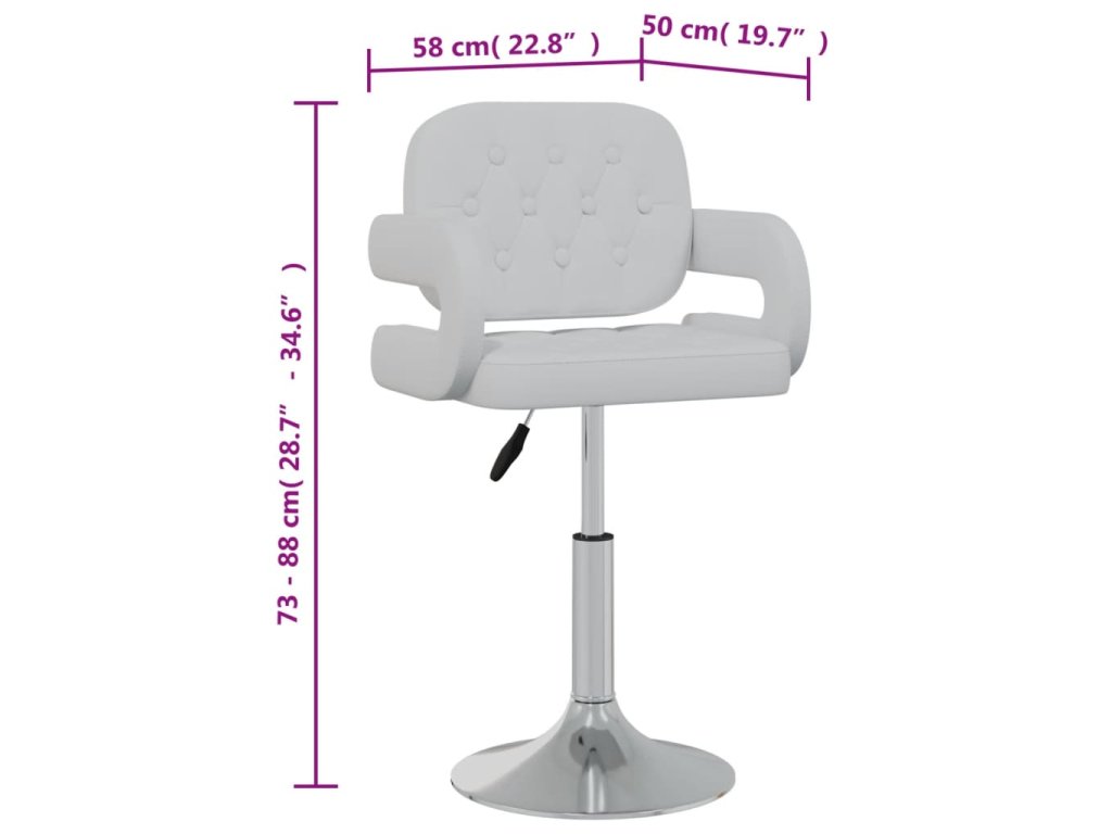 Táto stolička je čalúnená ľahko čistiteľnou umelou kožou a poskytne vám optimálne pohodlie pri sedení. Budete si na nej môcť vychutnať večeru, čítať či odpočívať v obývacej izbe. Vďaka plynovému zdvíhaciemu mechanizmu je sedadlo výškovo nastaviteľné. Sedadlo sa otáča o 360 stupňov a okrem toho je táto stolička podporená chrómovaným kovom, čo zabezpečuje jej mimoriadnu stabilitu.