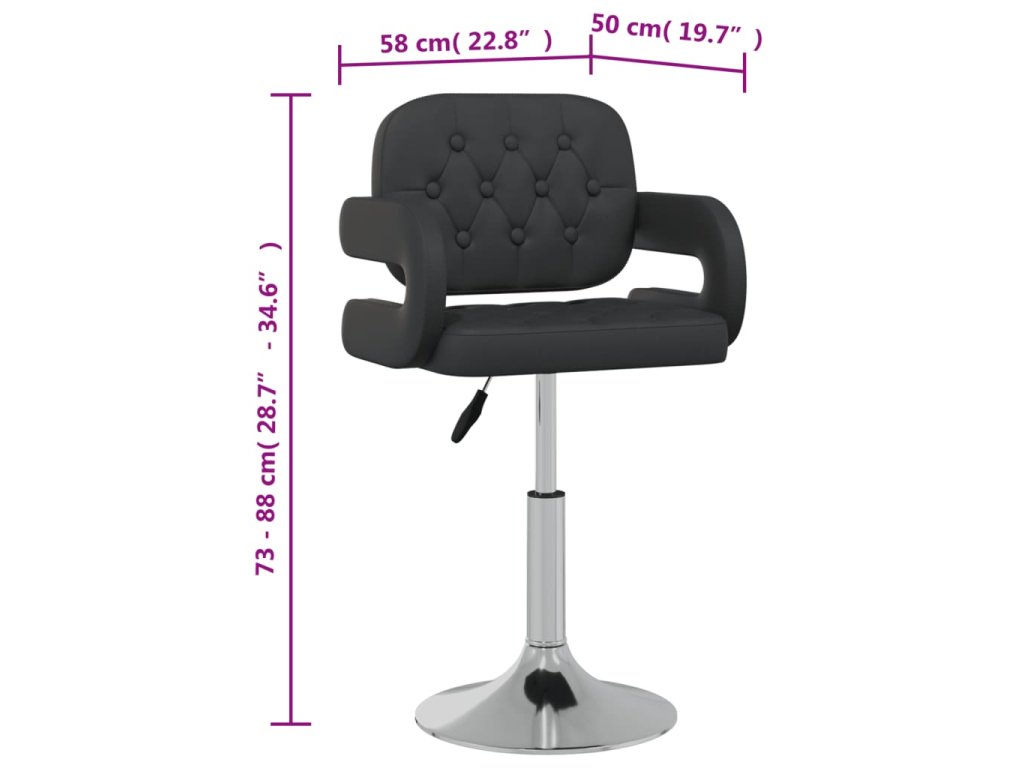 Táto stolička je čalúnená ľahko čistiteľnou umelou kožou a poskytne vám optimálne pohodlie pri sedení. Budete si na nej môcť vychutnať večeru, čítať či odpočívať v obývacej izbe. Vďaka plynovému zdvíhaciemu mechanizmu je sedadlo výškovo nastaviteľné. Sedadlo sa otáča o 360 stupňov a okrem toho je táto stolička podporená chrómovaným kovom, čo zabezpečuje jej mimoriadnu stabilitu.