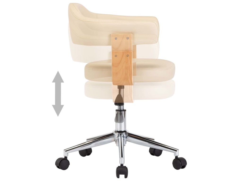 Poskytuje optimálne pohodlie pre vaše rodinné večere, na čítanie alebo odpočinok v obývacej izbe. Sedadlo a operadlo sú ergonomicky navrhnuté a sú čalúnené jemnou umelou kožou, vďaka čomu je stolička mimoriadne pohodlná. Vďaka drevenému rámu a oceľovým nohám je stolička trvácna. Stolička je otočná o 360 stupňov. Plynový zdvíhací mechanizmus umožňuje nastaviť výšku.