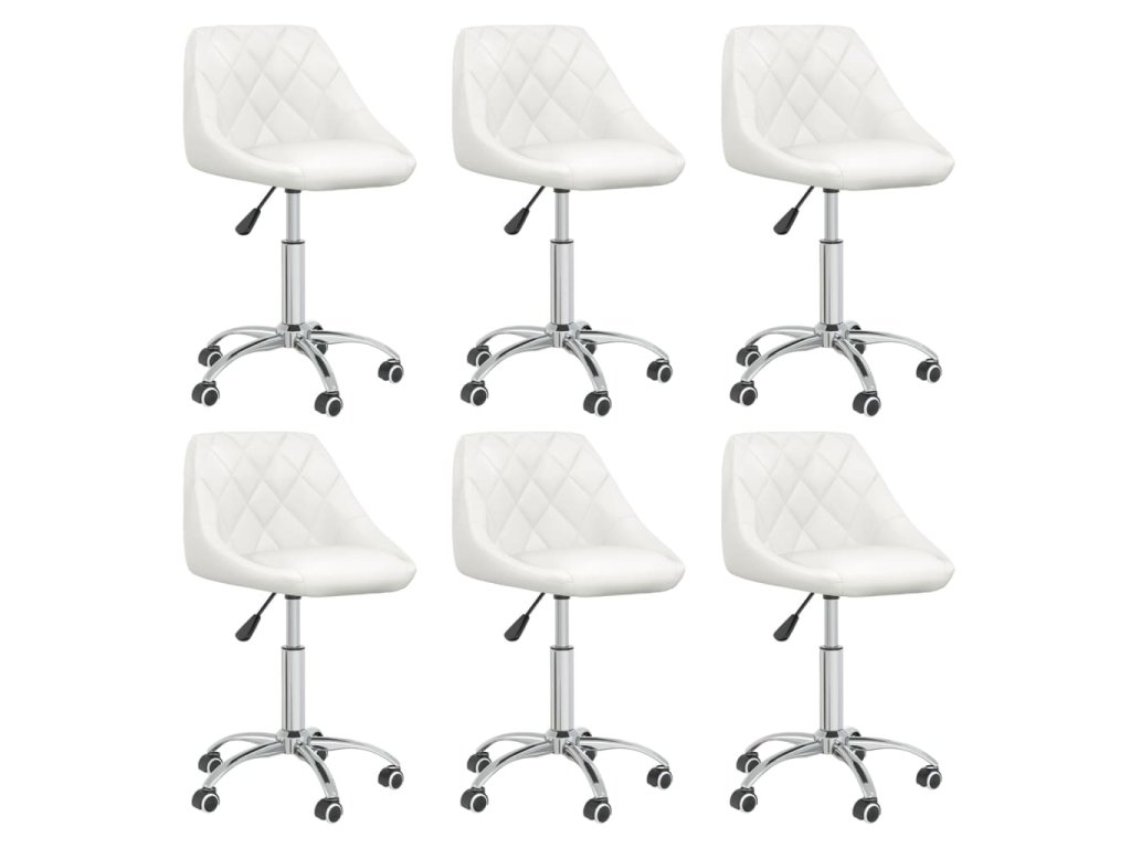 Tieto otočné stoličky sú čalúnené umelou kožou mäkkou na dotyk, čo vám prináša optimálne pohodlie počas sedenia. Chrómovaný oceľový rám zaistuje, že je stolička robustná a stabilná. Vďaka plynovému zdvíhaciemu mechanizmu sú tieto jedálenské stoličky výškovo nastaviteľné, vďaka čomu sú perfektným doplnkom do vášho jedálenského kúta. Okrem toho sa sedadlo môže otáčať o 360 stupňov pre veľkú flexibilitu. Kolieska vám umožňujú voľne sa pohybovať v rôznych smeroch.