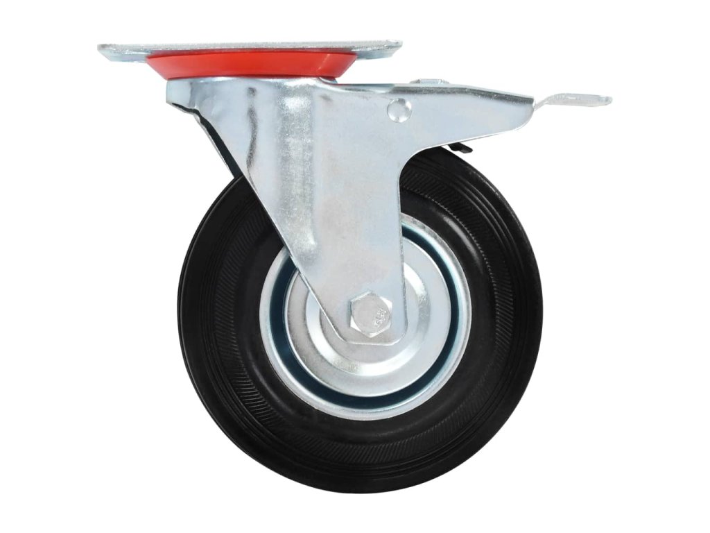 Kolieska sú vyrobené z gumy, ktorá sa vyznačuje dobrou odolnosťou voči nárazom a vibráciám, vďaka čomu sa kolieska budú pohybovať plynule a ticho. Kolieska majú mäkký povrch, aby nepoškrabali podlahu. Pozinkovaný železný rám je mimoriadne odolný voči korózii a kolieskam dodáva potrebnú pevnosť a trvácnosť. Otočné kolieska sú vybavené brzdami pre flexibilnejšie ovládanie. Každé koliesko má maximálnu nosnosť 100 kg.