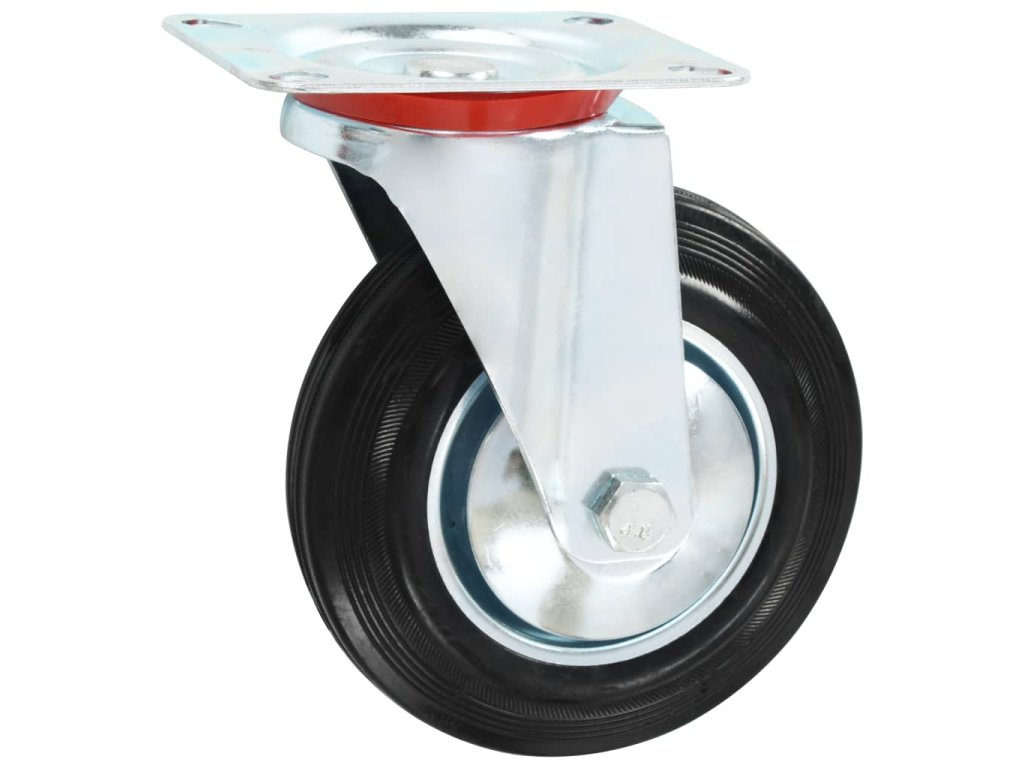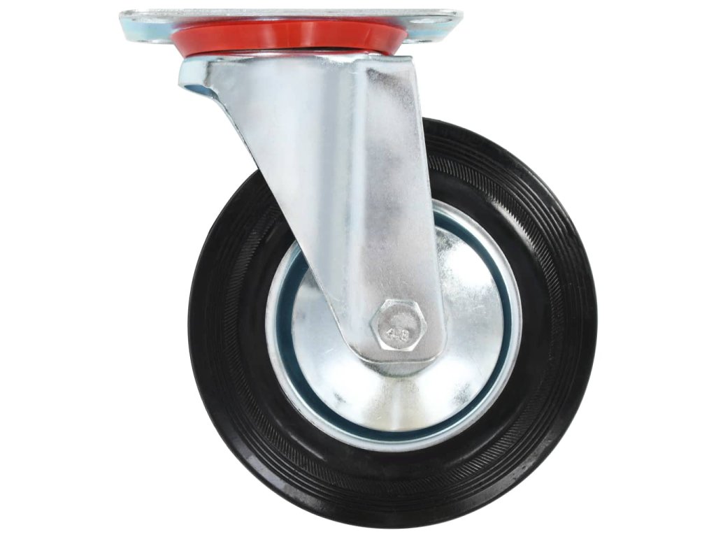 Tieto kolieska sú vyrobené z gumy, ktorá sa vyznačuje dobrou odolnosťou proti nárazom a vibráciám, čo umožňuje plynulý a tichý chod týchto koliesok. Ich mäkké povrchy navyše účinne chránia vašu podlahu pred poškriabaním. Okrem toho je železný rám z pozinkovaného plechu vysoko odolný proti hrdzi, a tým zvyšuje trvanlivosť a odolnosť kolieska. Každé koliesko má maximálnu nosnosť až 150 kg.