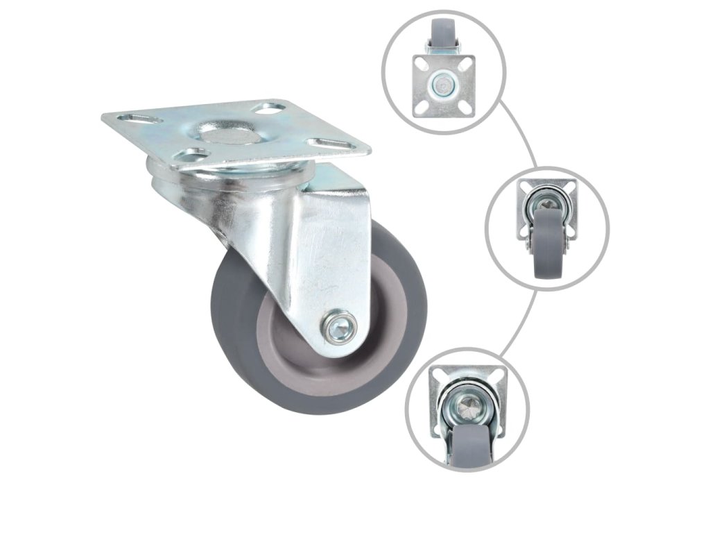 Kolieska sú vyrobené z TPR (termoplastickej gumy), ktorá sa vyznačuje dobrou odolnosťou voči nárazom a vibráciám, vďaka čomu sa kolieska budú pohybovať plynule a ticho. Kolieska majú mäkký povrch, aby nepoškrabali podlahu. Pozinkovaný železný rám je mimoriadne odolný voči korózii a kolieskam dodáva potrebnú pevnosť a trvácnosť. Každé koliesko má maximálnu nosnosť 35 kg.