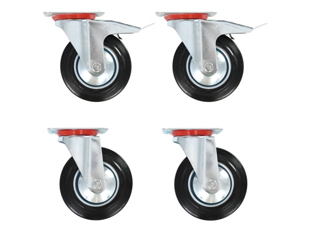 Kolieska sú vyrobené z gumy, ktorá sa vyznačuje dobrou odolnosťou voči nárazom a vibráciám, vďaka čomu sa kolieska budú pohybovať plynule a ticho. Kolieska majú mäkký povrch, aby nepoškrabali podlahu. Pozinkovaný železný rám je mimoriadne odolný voči korózii a kolieskam dodáva potrebnú pevnosť a trvácnosť. Dve z týchto otočných koliesok sú vybavené dvojitými brzdami pre flexibilnejšie ovládanie. Každé koliesko má maximálnu nosnosť 150 kg.