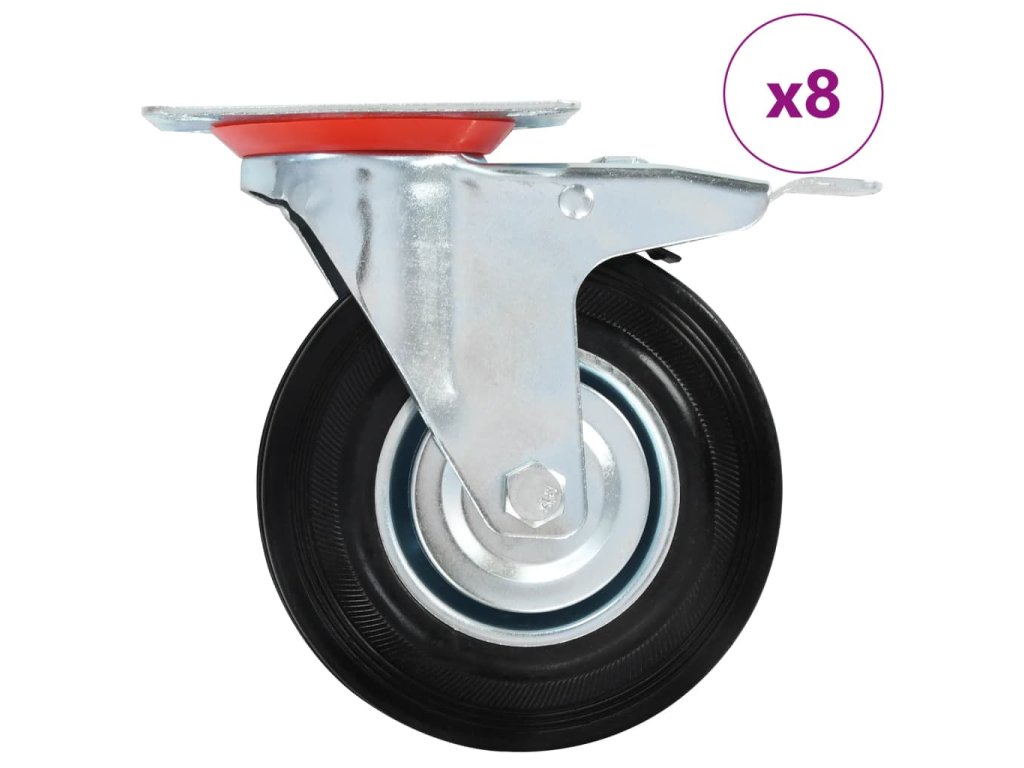 Kolieska sú vyrobené z gumy, ktorá sa vyznačuje dobrou odolnosťou voči nárazom a vibráciám, vďaka čomu sa kolieska budú pohybovať plynule a ticho. Kolieska majú mäkký povrch, aby nepoškrabali podlahu. Pozinkovaný železný rám je mimoriadne odolný voči korózii a kolieskam dodáva potrebnú pevnosť a trvácnosť. Otočné kolieska sú vybavené brzdami pre flexibilnejšie ovládanie. Každé koliesko má maximálnu nosnosť 100 kg.