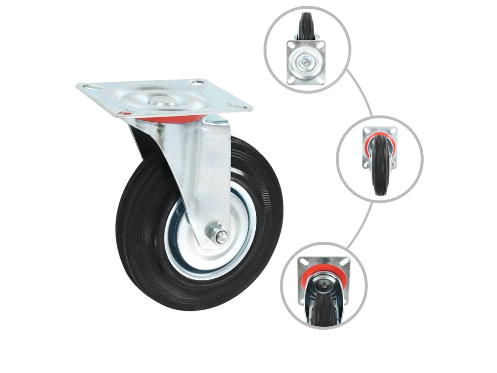 Kolieska sú vyrobené z gumy, ktorá sa vyznačuje dobrou odolnosťou voči nárazom a vibráciám, vďaka čomu sa kolieska budú pohybovať plynule a ticho. Kolieska majú mäkký povrch, aby nepoškrabali podlahu. Pozinkovaný železný rám je mimoriadne odolný voči korózii a kolieskam dodáva potrebnú pevnosť a trvácnosť. Každé koliesko má maximálnu nosnosť 100 kg.