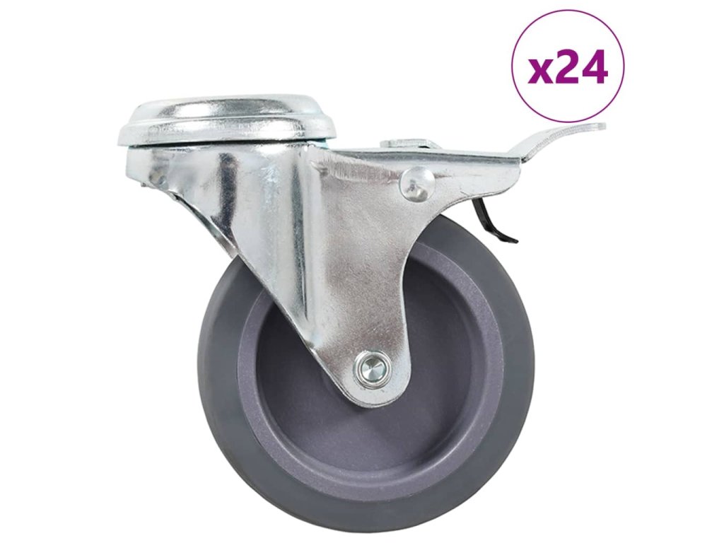 V balení sa nachádza 24 otočných koliesok s otvorom na skrutku, z ktorých polovica má brzdu.