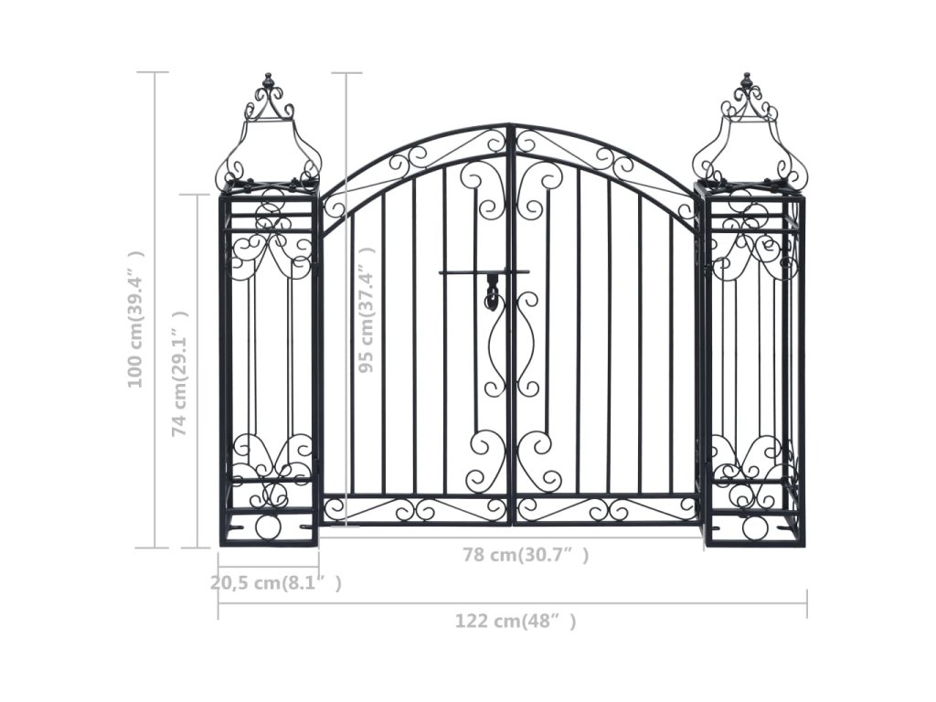 Záhradná brána je dokonale spracovaná, pretože je vyhotovená z kovaného železa, ktoré prechádza procesom zahrievania, ohýbania, tvarovania a krútenia, až kým nedosiahne požadovaný tvar. Súčasťou balenia je aj zámka so závesným čapom, pomocou ktorej sa dá brána rýchlo uzamknúť a oporné stĺpiky na jednoduchú montáž.