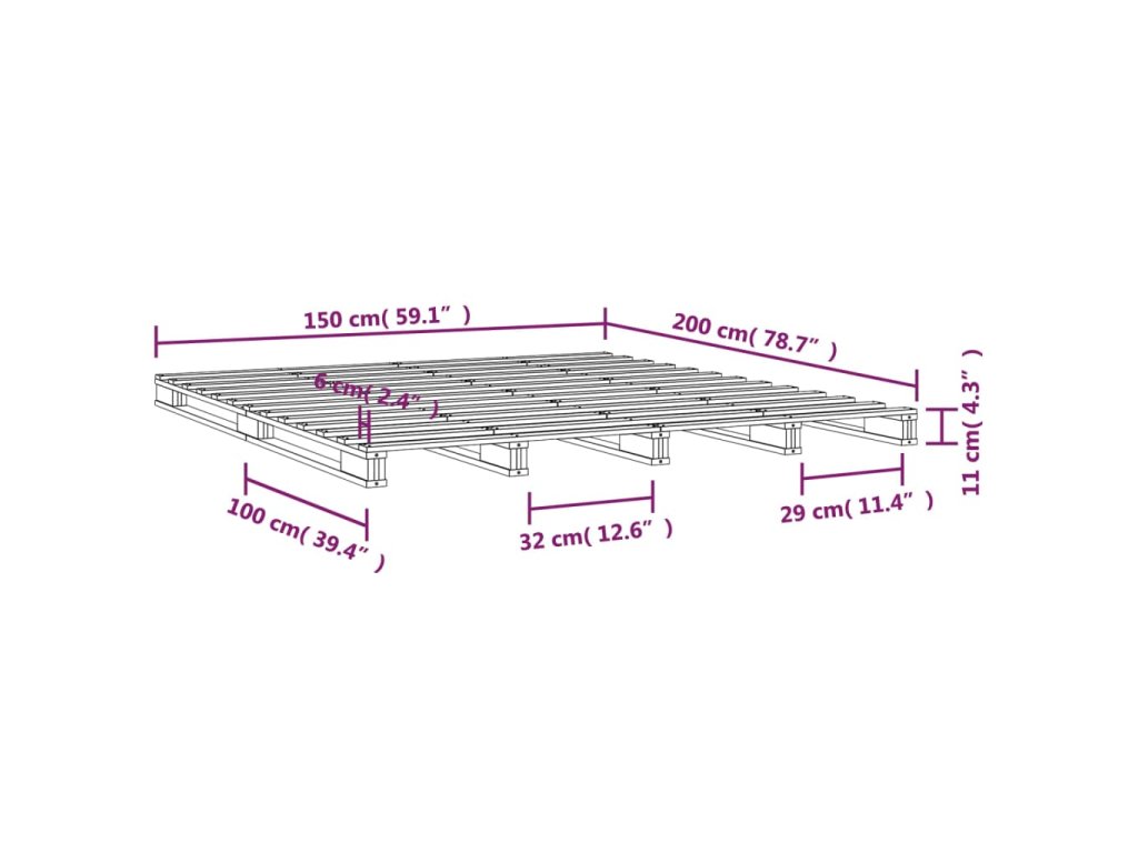- Tento rám postele je vhodný pre matrac s rozmermi 150 x 200 cm (kráľovská veľkosť).