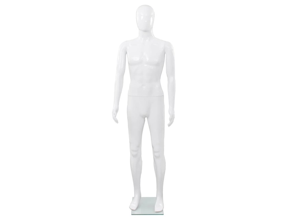 Táto celotelová pánska figurína so skleneným podstavcom a náterom s vysokým leskom sa môže používať na vystavenie oblečenia, parochní alebo topánok vo výkladoch.